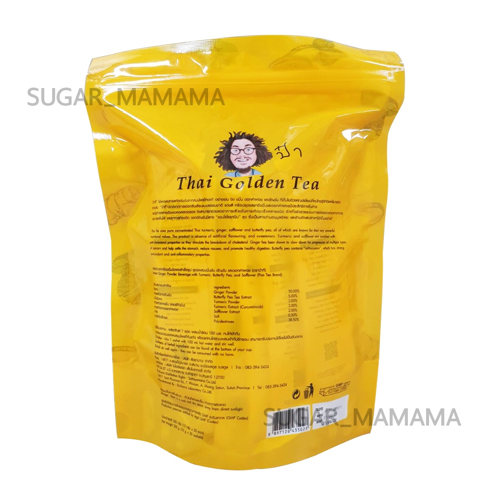 เครื่องดื่มขิงผงสำเร็จรูปสูตรผสมขมิ้น อัญชัน และดอกคำฝอย (ตรา ป๋าที) วิธีรับประทาน ป๋าที 1 ซอง ผสมน้ำร้อน 150-200 มิลลิลิตร คนให้เข้ากัน อย. 13-2-12461-2-0002 จำนวน 30 ซอง ต่อกล่อง