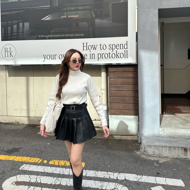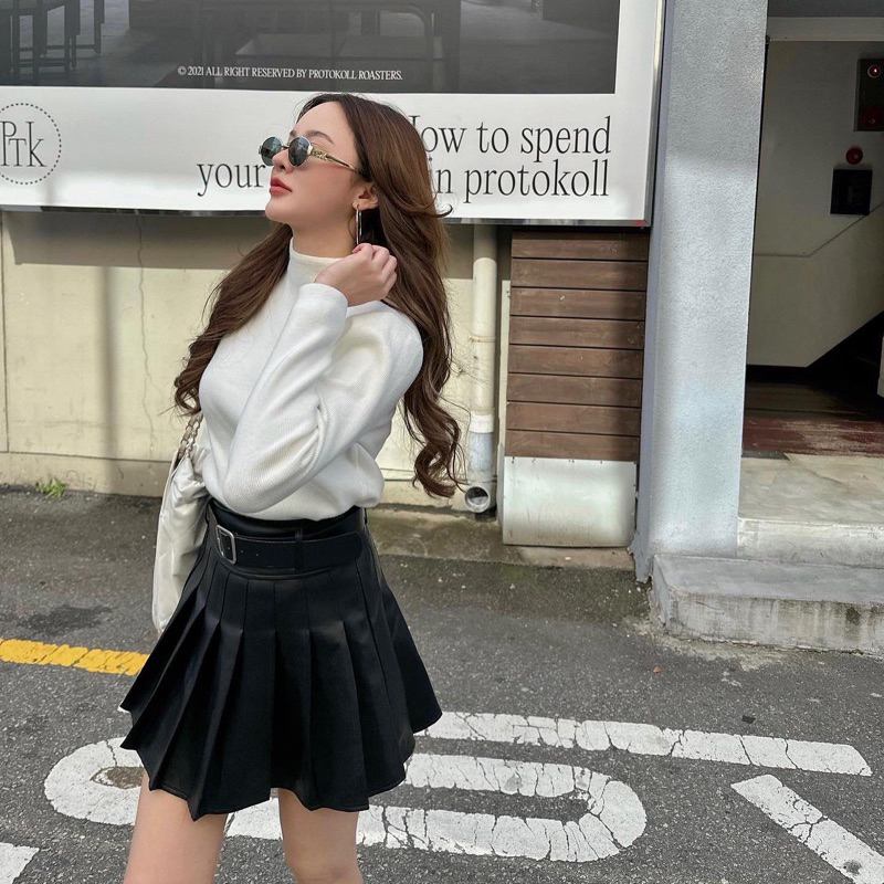 Leather skirt with belt 450฿ สี: ดำ,น้ำตาล กระโปรงหนังทรง tennis skirt ขอบเอวสูง มีแถมเข็ดขัดให้ด้วยค่า ตามสีกระโปรงเลย มีซับในกางเกงกันโป๊นะคะ ทรงน่ารักมากๆ🥰 แมทกับเสื้อสายเดี่ยว เสื้อยืด หรือแมทลุค winter เข้ากันสุดๆ ซิปข้าง ยาว15” S เอว 25-26” สะโพก 35-36” M เอว 27-28” / 37-38” L เอว 29-3