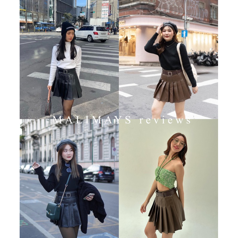 MALIMAYS - Leather skirt with belt กระโปรงหนังแถมเข็มขัด