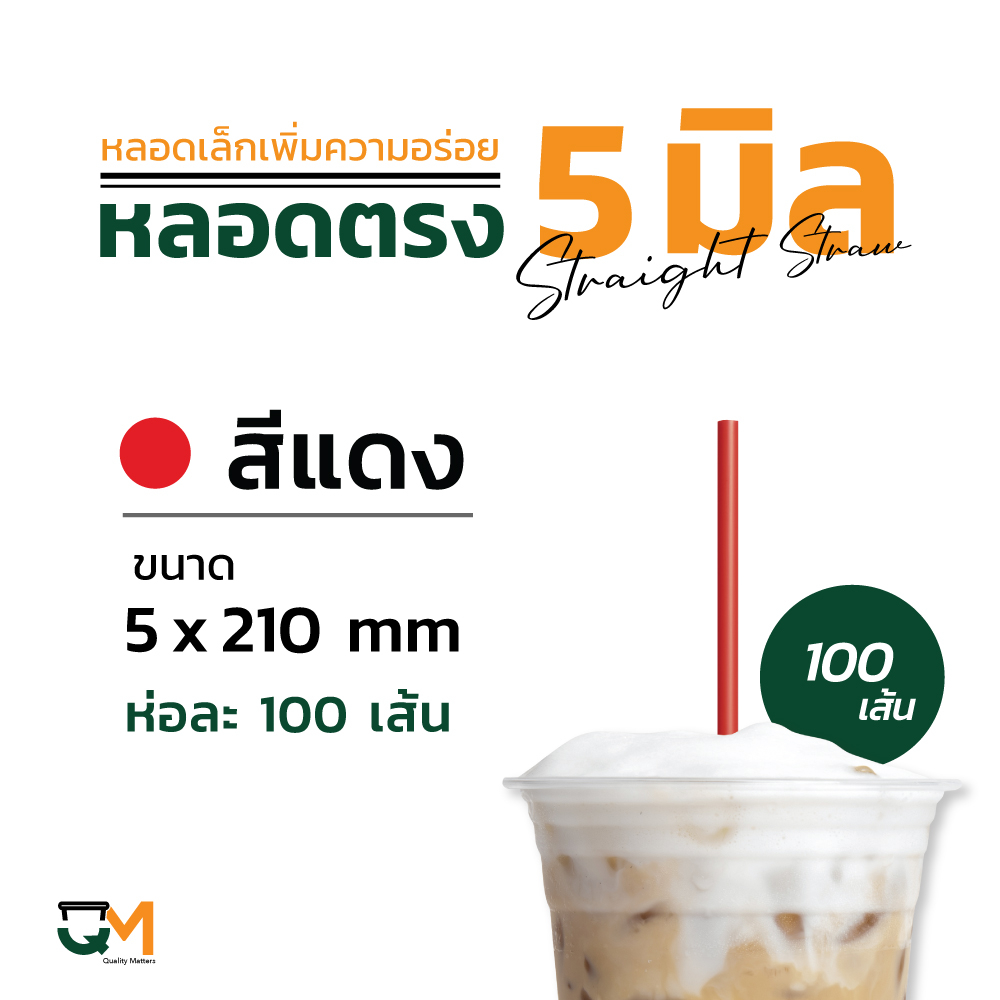 หลอดตรง 5 มิล ห่อฟิล์ม หลอดกาแฟ สีดำ สีน้ำเงิน บรรจุ 100 เส้น