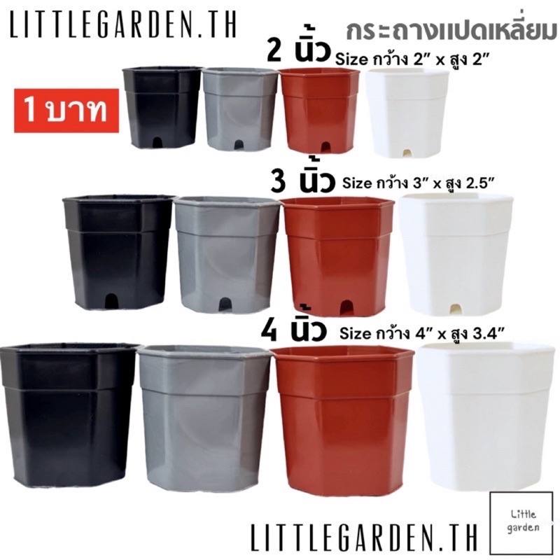 Little กระถางแคคตัส กระถางแปดเหลี่ยม 2 นิ้ว 3 นิ้ว 4 นิ้ว (สีดำ สีขาว สีอิฐ สีเทา)