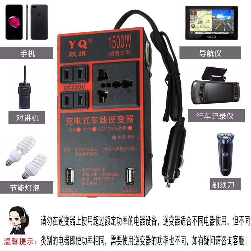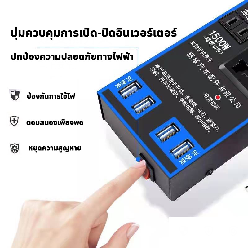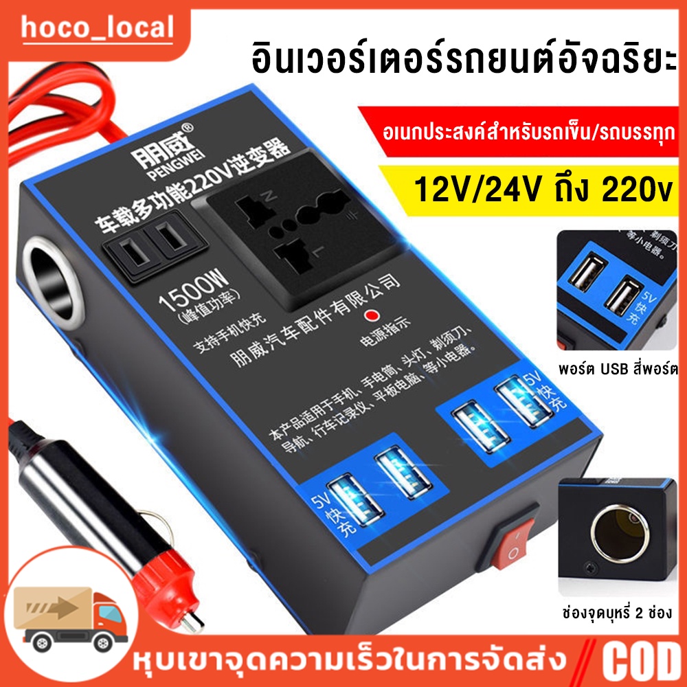 อินเวอร์เตอร์ 1500W อินเวอร์เตอร์ในรถยนต์12V/24V ออก 220V แปลงไฟรถยนต์ เป็นไฟบ้าน รถ อินเวอร์เตอร์พาวเวอร์ รถอินเวอร์เตอร์ อินเวอร์เตอร์แปลงไฟ อินเวอร์เตอร์พาวเวอร์รถยนต์ USB Charger Fast Charging ชาร์จเร็ว อินเวอร์เตอร์ไฟฟ้าแบบพกพา ​แปลงไฟ เหมาะสำหรับความหลากหลายของรุ่น: รถยนต์,รถบรรทุก,รถออฟโรด