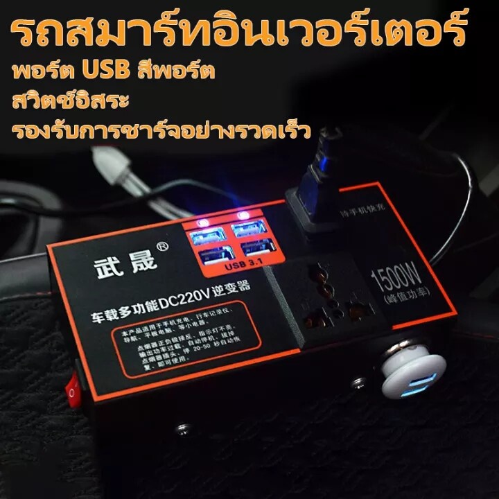 ตัวแปลงไฟรถเป็นไฟบ้าน แปลงไฟ 12V 24Vเป็น 220V แปลงไฟรถยนต์ อินเวอร์เตอร์แปลงไฟ ที่ชาจในรถยนต์ อินเวอร์เตอร์