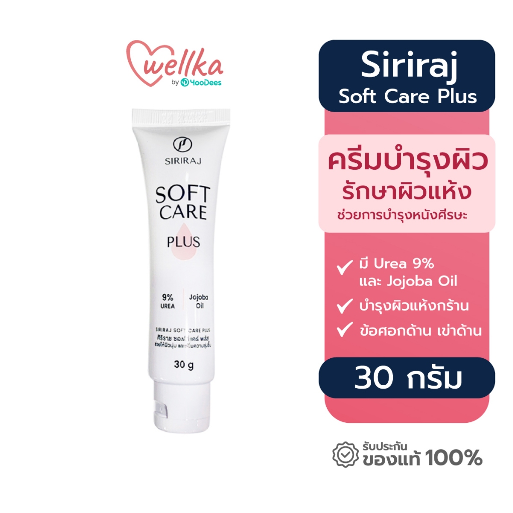 Siriraj Soft Care Plus ศิริราช ซอฟแคร์ พลัส ขนาด 30กรัม ศิริราชซอฟท์แคร์พลัส ขนาด 30 กรัม ใช้สำหรับทารักษาผิวแห้ง หยาบกร้าน ขาดความชุ่มชื่น ผิวแห้งแตก ส้นเท้าแตก ข้อศอกด้าน เข่าด้าน เมื่อใช้แล้ว ช่วยให้ผิวหนังนุ่มขึ้นและเพิ่มความชุ่มชื่น ส่วนประกอบ : ยูเรีย 9% แ