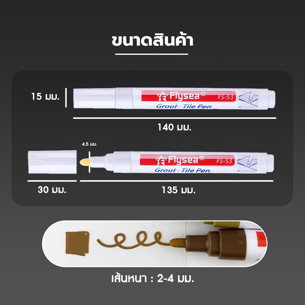 ปากกายาแนว ซ่อมร่องยาแนวกระเบื้องเซรามิก กระเบื้องห้องน้ำ กระเบื้องห้องครัว 🔥ใช้ง่าย แห้วไว สีเนียน กันน้ำ เหมือนใหม่ 🔥เหมาะสำหรับการตกแต่งช่องว่างของรอยยาแนวกระเบื้อง 🔥ปรับปรุงซ่อมแซมรอยต่อของผนังให้กลับมาดูดีเหมือนเดิม ⭐️ ง่ายกว่า เพียงใช้ปากกาวาดตามช่องว่างของรอย