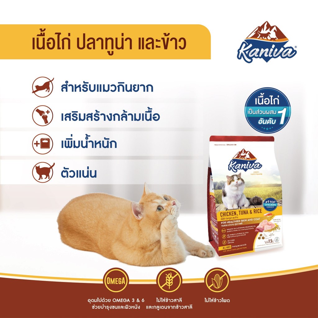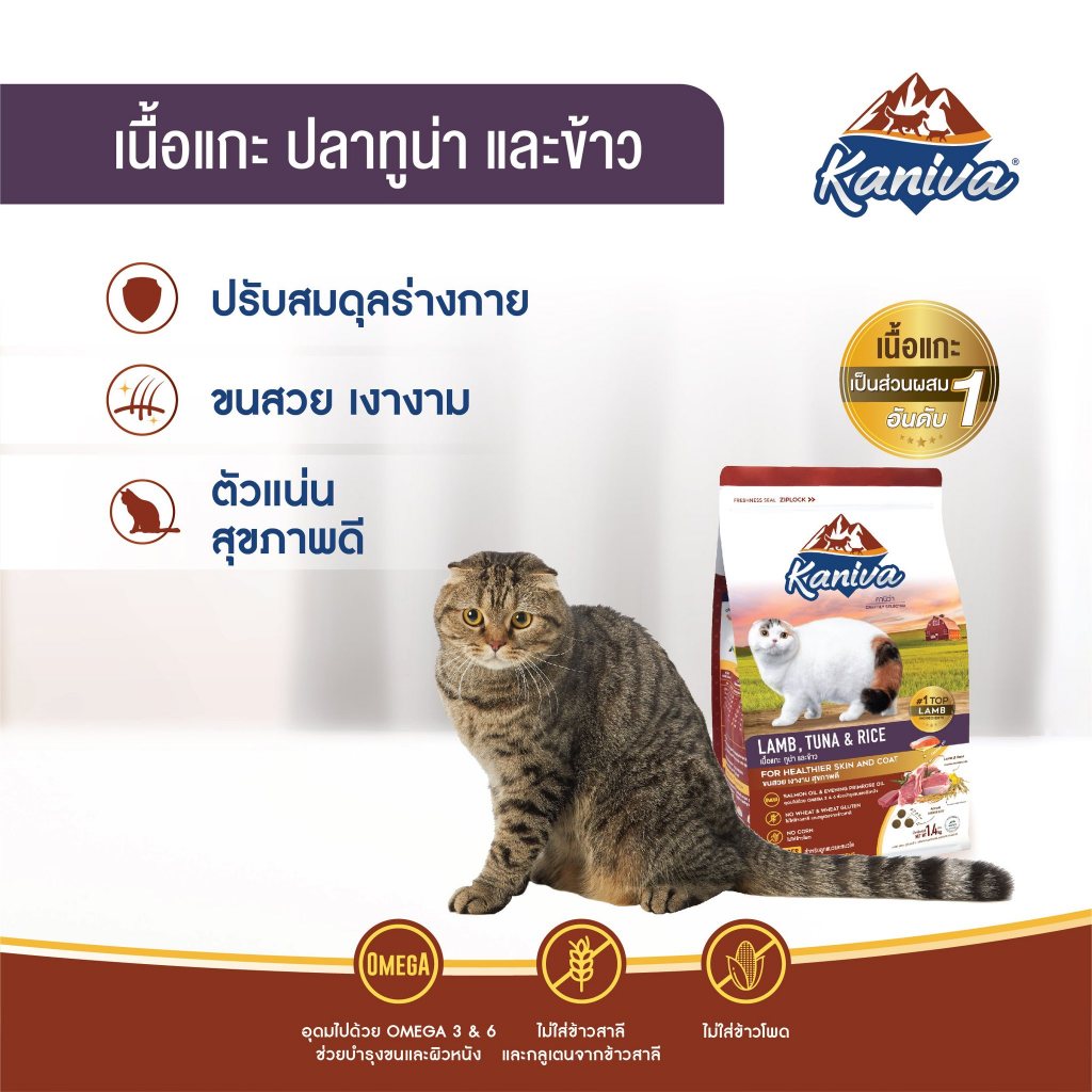 ... ว่าได้คัดสรรวัตถุดิบทุกชนิดเพื่อให้แมวของคุณ " ขนสวย เงางาม สุขภาพดี " Kaniva อาหารแมวที่เหมียวอยากบอกต่อถึงความอร่อย ❌ ไม่มีส่วนผสมของ ข้าวโพด กลูเตน ✅ เนื้อแซลมอนเป็นส่วนผสมอันดับ 1 ✅ มีส่วนผสมของน้ำมันปลาแซลมอน (Omega-3) ✅ มีส่วนผสมของน้ำมันพริมโรส (Omega-6) ✅ โซเดียมต่ำ รับประกันไม่เค็ม ✅ โปรตีน 30% ไขมัน 17% ✅ เหมาะสำหรับลูกแมว และแมวโต ดูน้อยลง -------------------------------------------------------------------**** Kaniva Lamb คานิว่า อาหารแมว สูตรเนื้อแกะ ปลาทูน่า และข้าว 9 Kg. อาหารแมว Kaniva สูตรใหม่ พร้อมจำหน่ายแล้ววันนี้.... ✨ Kaniva Lamb, Tuna and Rice (สูตรเนื้อแกะ ทูน่า และข้าว) 🍚 มีให้เลือกถึง 4 ขนาด : 380g. / 1.4Kg. / 3 Kg. และ 9 Kg. ✅ ใช้เนื้อแกะเป็นส่วนผสมอันดับ 1 ✅ ไม่มีส่วนผสมของ ข้าวโพด กลูเตน ✅ โปรตีน สูง ไขมัน ต่ำ ✅ มี Omega-3 & 6 ✅ โซเดียมต่ำ รับประกันไม่เค็ม ✅ เหมาะสำหรับลูกแมว และแมวโต ✅ เม็ดขนาดพอดี มีกลิ่นหอม อร่อย ทานง่าย เพื่อขนสวยเงางามสุขภาพดี บอกต่อความอร่อย x2 ได้แล้วที่นี่ Now!! -------------------------------------------------------------------**** Kaniva Indoor Cat คานิว่า อาหารแมว สูตรสำหรับแมวเลี้ยงในบ้าน 8 Kg. สูตรใหม่ Indoor Formula (สูตรเนื้อไก่งวง ปลาแซลมอน และข้าว) 🍚 มีให้เลือกถึง 4 ขนาด : 380g. / 1.4Kg. / 3 Kg. และ 9 Kg. 🐱❤️ อาหารแมวคานิว่า ถูกใจคน รู้ใจแมว! สูตรสำหรับแมวที่เลี้ยงระบบปิดหรือเลี้ยงในบ้าน ต้องการควบคุมน้ำหนักมีกิจกรรมน้อย ช่วยลดกลิ่นมูล (กลิ่นฉี่และกลิ่นอึ) มี Organics Mineral ช่วยเรื่องระบบดูดซึมสารอาหาร ✅ ใช้เนื้อสัตว์เป็นส่วนผสมอันดับ 1 ✅ ไม่มีส่วนผสมของข้าวโพดและกลูเตน ✅ โปรตีนสูง ไขมันต่ำ ✅ มี Omega-3 & 6 ✅ เม็ดเล็กพอดีคำ หอม… อร่อย… โซเดียมต่ำ ไม่เค็ม! ✅ เหมาะสำหรับลูกแมวและแมวโต -------------------------------------------------------------------**** Kaniva Mother Cat & Kitten คานิว่า อาหารแมว สูตรสำหรับแม่แมวและลูกแมว 8 Kg. สูตรใหม่ Kaniva Mother Cat & Kitten สูตรเนื้อไก่ ปลาแซลมอน และข้าว สำหรับแม่แมวและลูกแมว (ลูกแมว 3สัปดาห์ - 1ปี) 🍚 มีให้เลือกถึง 4 ขนาด : 380g. / 1.4Kg. / 3 Kg. และ 9 Kg. สำหรับแม่แมวและลูกแมว โปรตีนสูงช่วยในการเจริญเติบโตของลูกแมว มีส่วนผสมของ Colostrum (นมน้ำเหลือง) ✅ ช่วยเสริมสร้างภูมิคุ้มกัน, DHA ✅ ช่วยพัฒนาระบบประสาทและสมอง, Omega-3 & 6 ✅ ช่วยบำรุงขน และ Organic Minerals ✅ ช่วยสร้างภูมิคุ้มกัน พัฒนาเส้นประสาท ✅ สามารถดูดซึมได้ง่ายและนำไปใช้ประโยชน์ได้อย่างมีประสิทธิภาพ -------------------------------------------------------------------**** Kaniva Chicken คานิว่า อาหารแมว สูตรเนื้อไก่ ปลาทูน่า และข้าว 10 Kg. Kaniva อาหารแมวที่เหมียวอยากบอกต่อถึงความอร่อย 🍚 มีให้เลือกถึง 4 ขนาด : 380g. / 1.4Kg. / 3 Kg. และ 9 Kg. 👉 น้องเหมียว 2 ตัวขึ้นไป แนะนำขนาด 10 กก. (แบ่งถุงบรรจุขนาด 1 กก. 10 ถุง) Kaniva อาหารแมวที่เหมียวอยากบอกต่อถึงความอร่อยยย " ขนสวย เงางาม สุขภาพดี " ❌ ไม่มีส่วนผสมของ ข้าวโพด กลูเตน ✅ เ