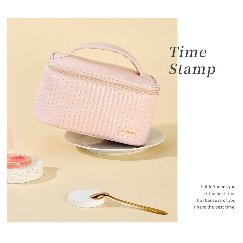 กระเป๋าใส่เครื่องสำอางค์ สีสวยหวานละมุนมากๆ มีที่จับด้านบน จุของได้เยอะ วัสดุ : PU ขนาด : 12*13.5*21 cm. มี 4 สี : สีครีม สีชมพู สีฟ้า สีกาแฟ