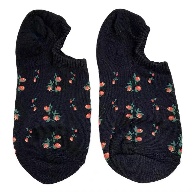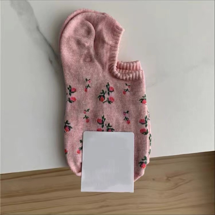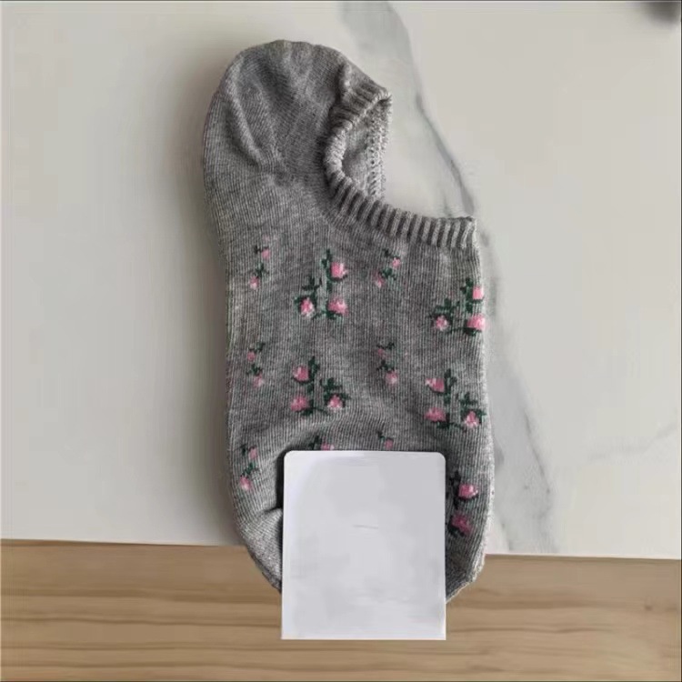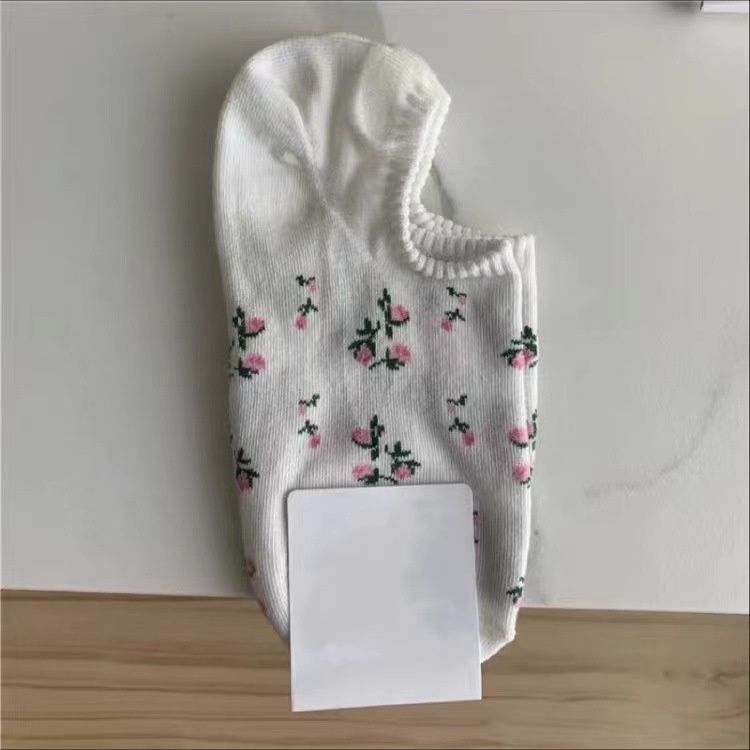 เวอร์ชั่นเกาหลีฤดูใบไม้ผลิและฤดูร้อนถุงเท้าผ้าฝ้ายบาง Hyun Yafeng ลายดอกไม้ขนาดเล็กสไตล์พระปากตื้นถุงเท้าเรือสาวที่มองไม่เห็นป้องกันปิด