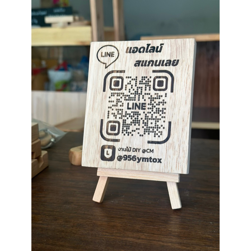 ** กดสั่งแล้วส่งข้อมูลรายละเอียดให้ทางร้านวางแบบและลูกค้าคอนเฟิร์มแบบด้วยน๊าาา** ทักแชทเลยจ้าาา ส่งเร็ว ป้ายสแกน QR CODE ขนาด 10x12cm. พร้อมขาตั้งป้าย • ป้ายสแกน QR รับเงิน / QR แอดไลน์ /QR facebook/QR Wifi • ส่งเร็ว สั่งทำ 1-2วัน •ไม้พาราประสาน เกรด AA ขนาด 10x12cm.หนา 1.6cm. • ฟรีข