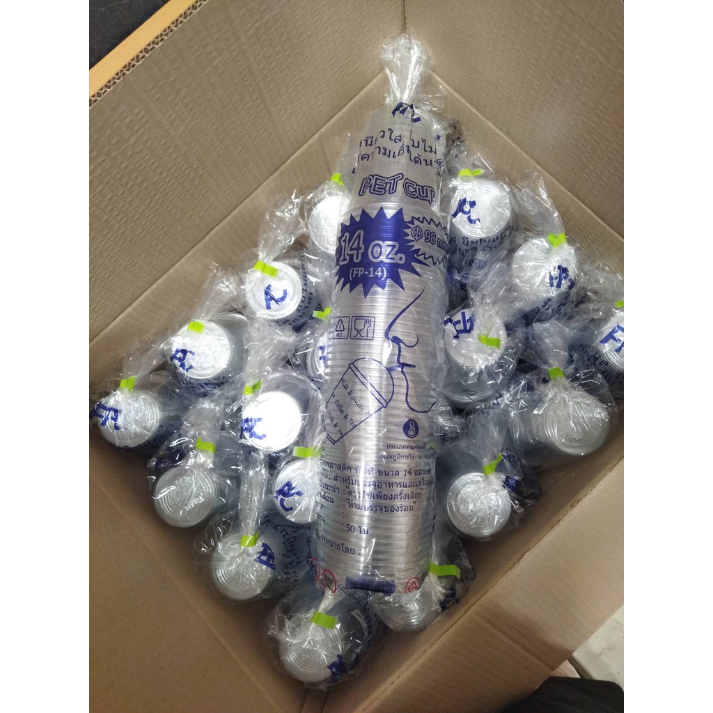 แก้ว PET เนื้อหนา เนื้อใสแข็ง 12oz 14oz 16oz ปาก 92/95/98 แถวละ 50 ใบ พร้อมฝา แก้วPET แก้วพลาสติก 12ออนซ์ 14ออนซ์ FPC FC