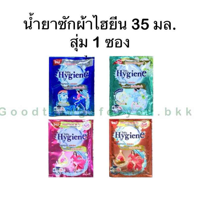 น้ำยาซักผ้าไฮยีน Hygiene expert wash 35 มล. สุ่มกลิ่น 1 ซอง แบบใหม่ ใหญ่ขึ้นกว่าเดิม