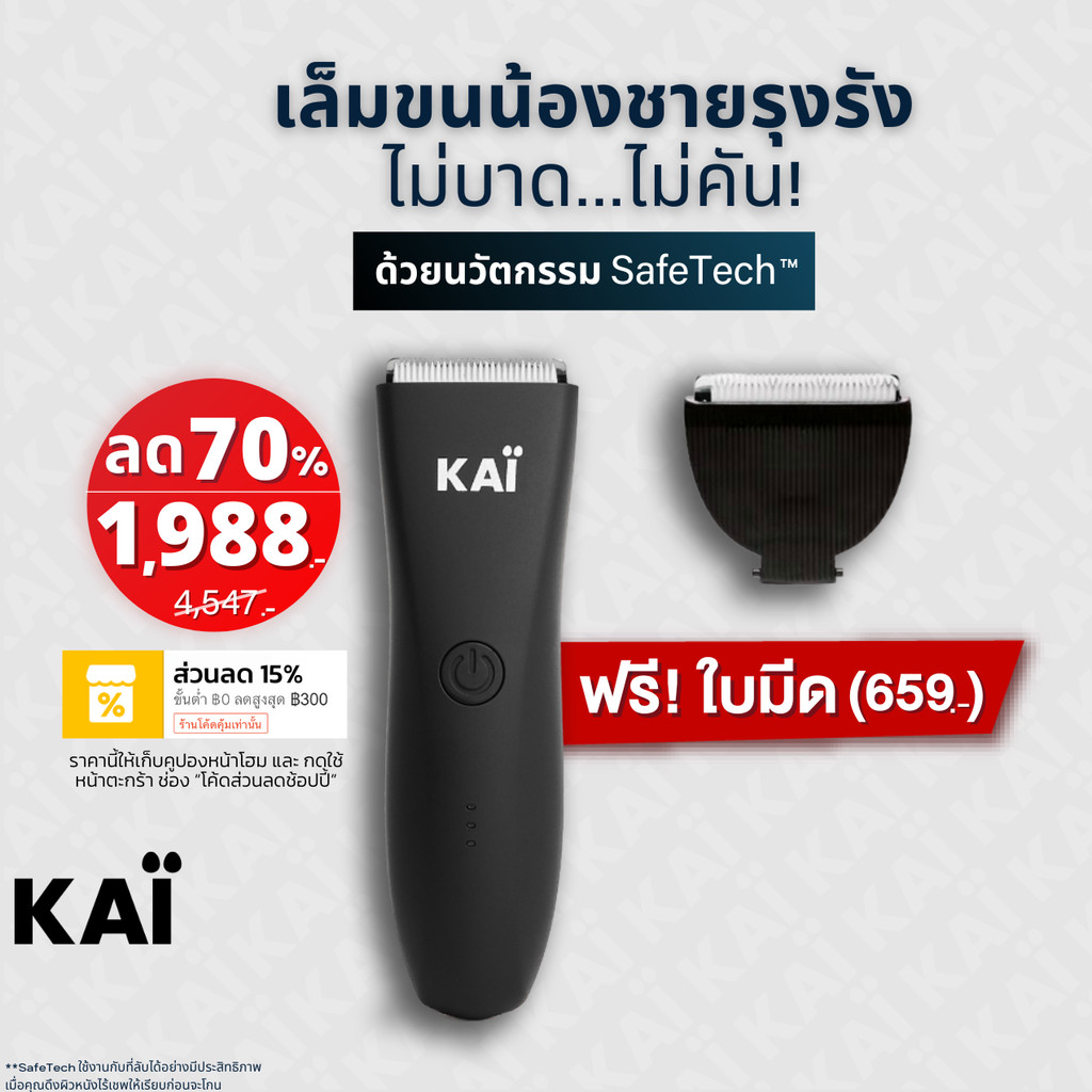KAI Trimmer เครื่องเล็มขนน้องชาย ไม่บาดไม่คัน นวัตกรรม SAFETECH™ สำหรับผิวบอบบาง ⚠️ระวังสินค้าปลอม❗KAI GROOMING ไม่มีตัวแทนจำหน่าย ✅ของแท้ซื้อได้จากร้านนี้ร้านเดียว . 🥚Premium Ceramic Blade ปลอดภัย ตัดแต่งได้ทุกพื้นผิว 🥚Low Vibration Function ทนุถนอมต่อน้องชายคุณ 🥚Trim เล็มได้อย่างมีประสิทธ