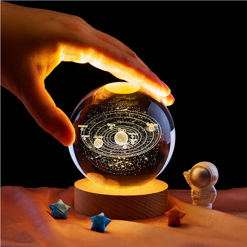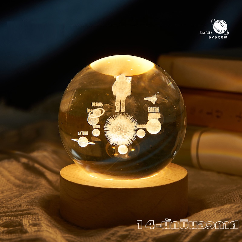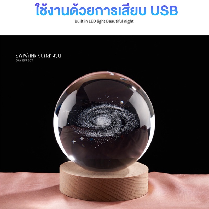โคมไฟลูกแก้ว 3D LED USB ตั้งโต๊ะ คริสตัล กาแลคซี่ ไฟดาว ของขวัญวันเกิด โคมไฟหัวเตียง ไฟแต่งห้องห้องนอน แจกปีใหม่ 6cm