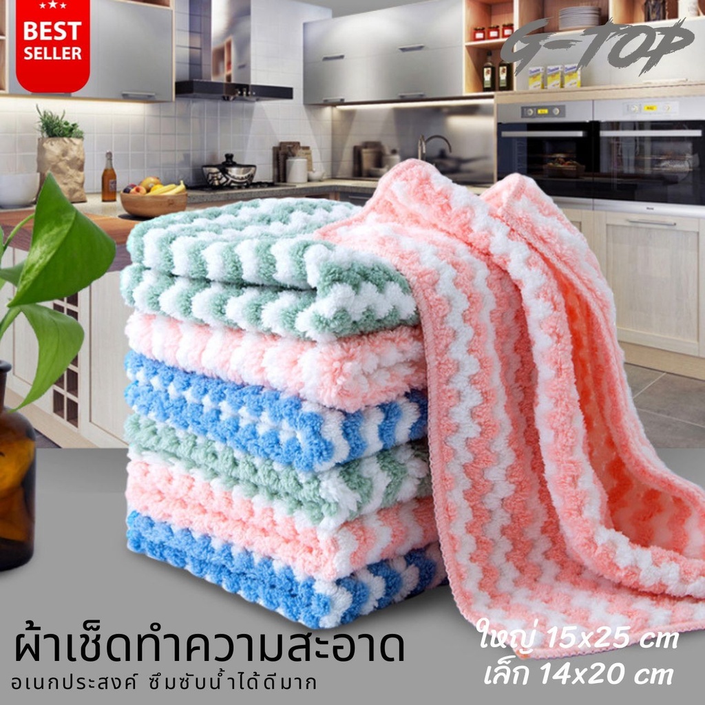 ✨จัดส่งเร็ว✨ ผ้าเช็ดโต๊ะ เช็ดจาน ผ้าทำความสะอาด เนื้อผ้าซับน้ำดี คละสี G2046