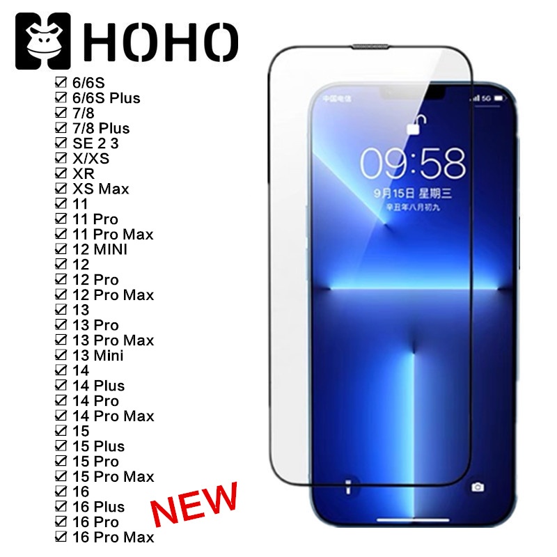 FC ฟิล์มกระจกนิรภัย ใช้สำหรับ iPhone 16 7 8 S + Plus XS XR Max 11 12 13 14 15 16 Pro Max Plus Mini ฟิล์มกระจก แบบเต็มจอ