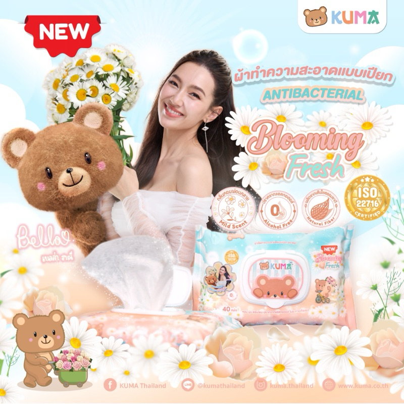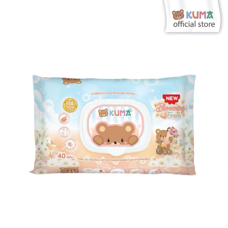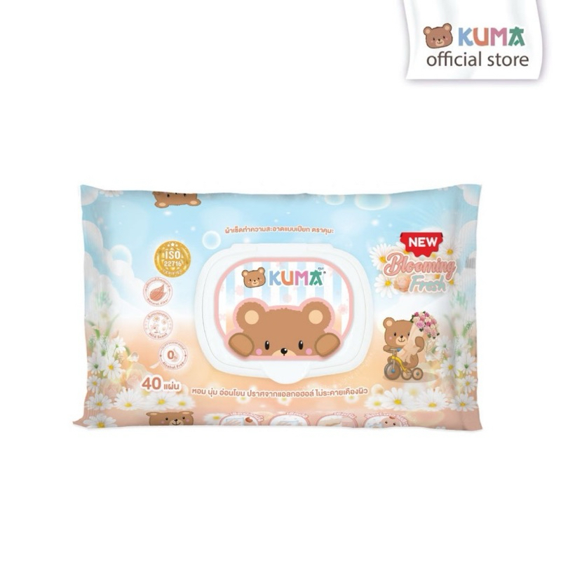 KUMA ทิชชู่เปียก รุ่นฝาปิด 40 แผ่น : 1 ห่อ (คละสี) KUMA ทิชชู่เปียก Blooming fresh : 1 ห่อ
