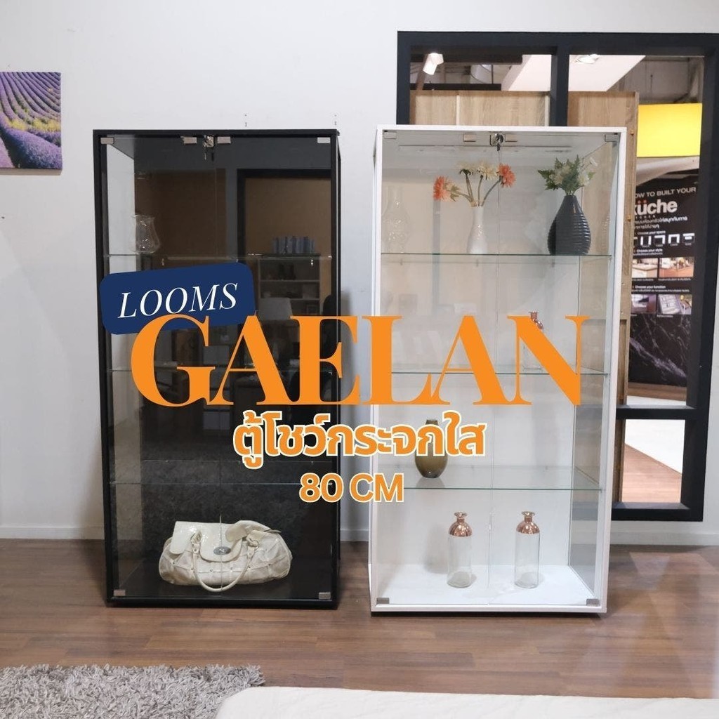 LOOMS ตู้โชว์กระจกใส รุ่น GAELAN ขนาด กว้าง 80 ลึก 40 สูง 160 ซม. โครงสร้างทำจากไม้สีดำ หน้าบานกระจกนิรภัยให้ความปลอดภัยในการใช้งาน มีกุญแจสำหรับล็อคได้อีกด้วย ชั้นกระจกสามารถรับน้ำหนักได้ชั้นละ 5 กิโลกรัม ตู้โชว์กระจก ขนาด 80 ซม. รุ่น GAELAN - ตู้โชว์กระจก รุ่น Gaelan ขนาด กว้าง 80 ลึก