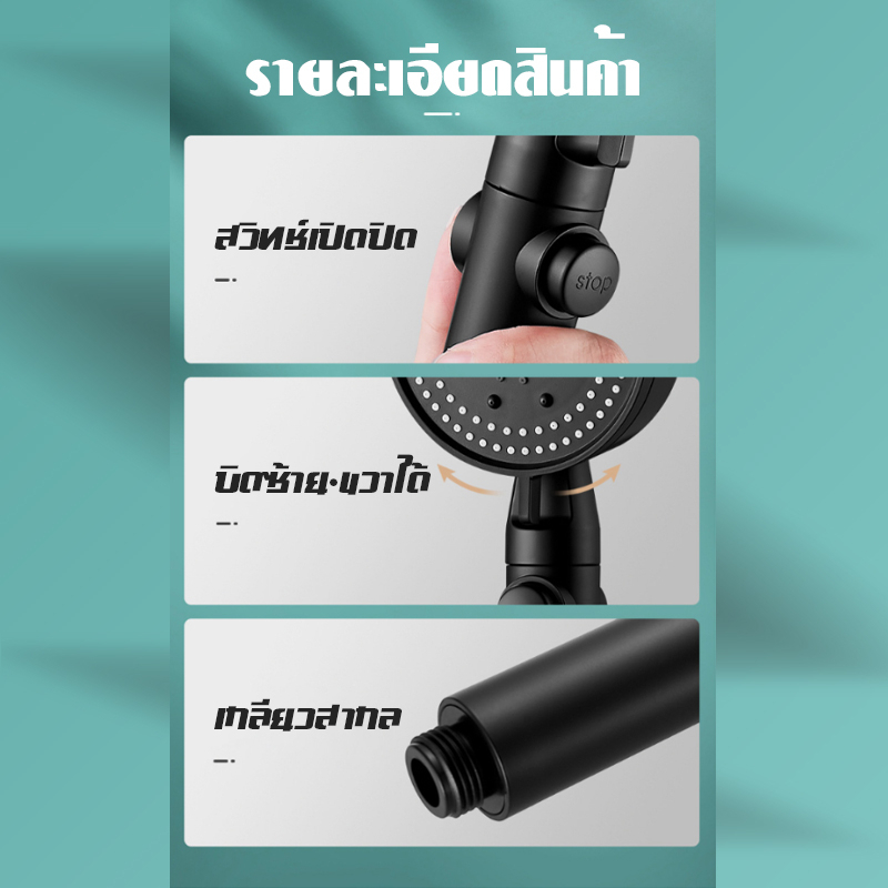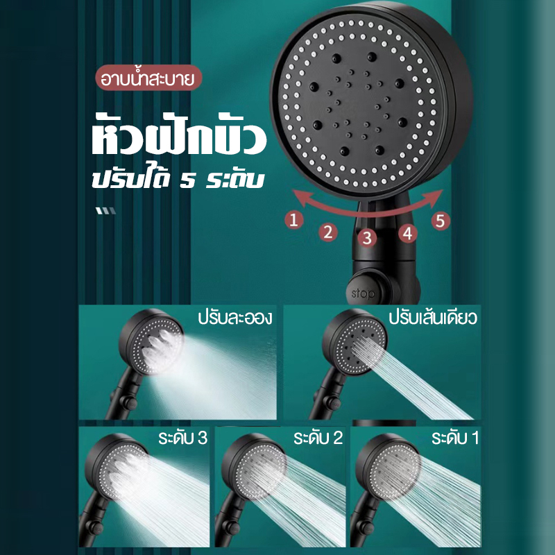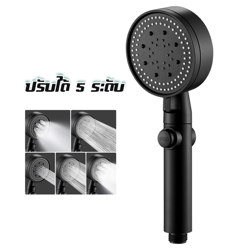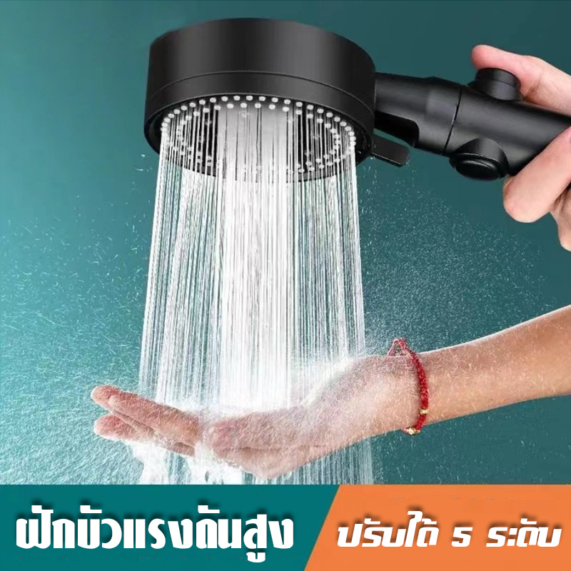 ฝักบัวอาบน้ำ รุ่นใหม่ ปรับได้ 5 ระดับ เปิดปิดที่ฝักบัวได้ ไม่มีสนิม น้ำแรงและนุ่ม แรงดันสูง มีอุปกรณ์สาย+ที่แขวน