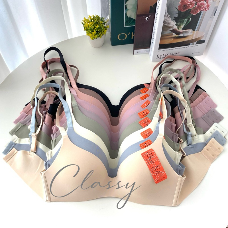 เสื้อใน ฺBeena 8124 ไร้โครง ไร้ขอบไร้ตะเข็บ เรียบหรู ใส่สบาย บางเบา 0.5 ซม ไร้รอย ไม่มีรอยแดงรอบตัว ทรงเต้าตื้น ไม่อ้า ใส่ทรงสวยแนบเนื้อ สินค้าใส่ดีมากๆๆ งาน 2 ตะขอ สายด้านหน้าเย็บติด ด้านหลังถอดได้ 📌สินค้าเทียบแบรนด์ งานผ้าคุณภาพดีมากๆๆ สินค้าขายดี ที่สุด *** คัพ A *** -32/70,3