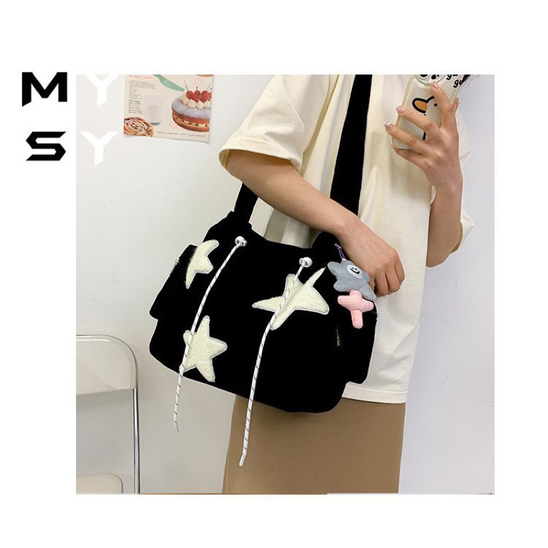 ส่งจากไทย (4สี/พร้อมส่ง) กระเป๋าสะพายข้าง ผ้าแคนวาสสไตล์ใหม่ ใบใหญ่ ถอดสายได้
