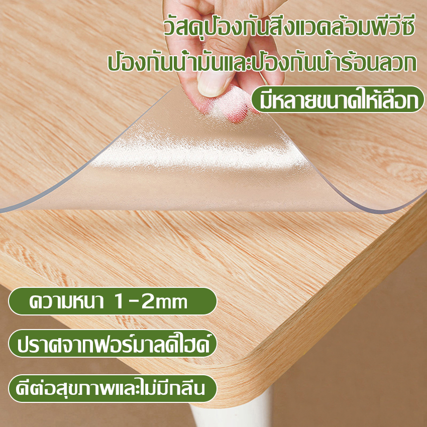 ผ้าปูโต๊ะ ผ้าคลุมโต๊ะ ใสพลาสติกพีวีซี PVC ไม่มีกลิ่น กันน้ำมันกันความร้อน ทนทาน ทำความสะอาดง่าย ผ้าปูโต๊ะพลาสติกแบบใส