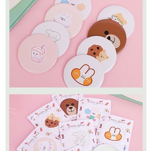 【ของขวัญ】กระจกพกพาขนาดเล็ก กระจกทรงกลมน่ารัก