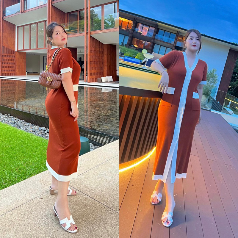 เดรสไหมพรม มีsize 32-50 สาวอวบ ใส่แล้วผอมลงทันที รุ่น Mimi Slim