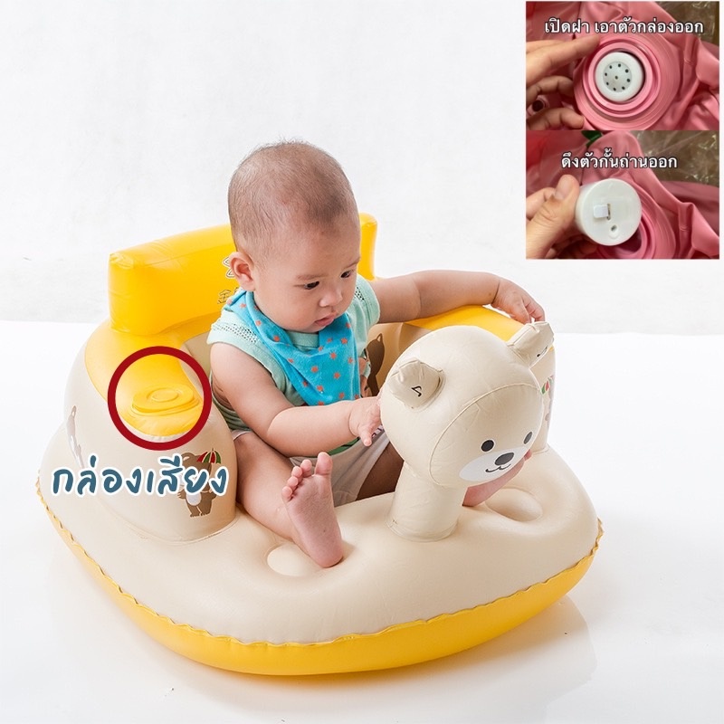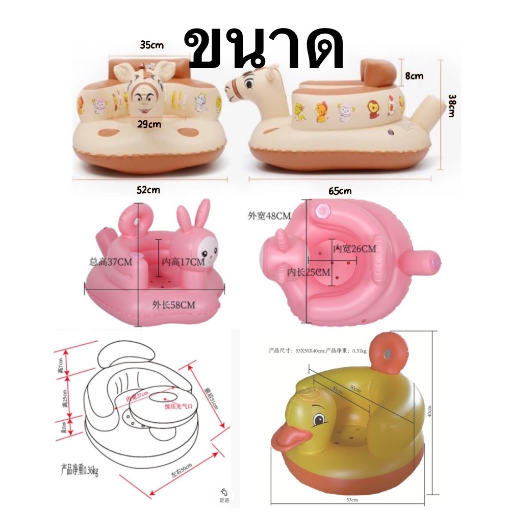 ... ดนั่ง ฝึกนั่งเด็ก ใช้ทำกิจกรรมต่างๆ 🍼อาบน้ำหรือทานข้าวได้ 🍼สามารถพกพานำไปใช้ได้ทุกสถานที่เป่าลมเนื้อ PVCหนาพิเศษ 🍼ด้านหน้ามีแป้นจับ ราคาได้พอดีช่วงขา พนักพิงด้านหลัง ยังสบายไม่ล้มหง้ายหลัง 🍼รับน้ำหนักได้มากถึง 20 กิโล 🍼บีบที่หูจะมีเสียงปี๊บๆ ทุกลาย (❌ยกเว้นลายม้าและ UFO) 🍼มีที่ปั้มลมในตัว โดยใช้มือกดปั้ม ตรงจุกใหญ่ 🎤สินค้าที่มีปุ่มกดดนตรี🎸 จะลงท้ายว่า " มีเพลง " จะมีอยู่ 2 ลาย คือ หมีเหลือง / หมีเหลือง มีเพลง สินค้าที่มีดนตรี ให้ลูกค้าแกะฝาครอบออก แล้วดึงตัวกล่องดนตรีออกมา ที่ก้นกล่องดนตรี จะมีแผ่นพลาสติดกั้นถ่านอยู่ ให้ดึงออก คําเตือน: > เราจัดส่งสินค้าอย่างรวดเร็ว คุณจะได้รับสินค้าภายใน 1-3 วัน > หากคุณมีคําถามใด ๆ คุณสามารถติดต่อเราได้ตลอดเวลา > เวลาให้บริการออนไลน์: วันจันทร์ 9:00 น. - วันเสาร์ 18:00 น. > หากคุณมีคําถามใด ๆ หลังจากได้รับสินค้าคุณสามารถปรึกษาฝ่ายบริการลูกค้าออนไลน์ของเราได้ > เราจะตอบกลับคุณโดยเร็วที่สุดและให้บริการที่มีคุณภาพสูงสุด > รีวิว 5 ดาวของคุณจะสนับสนุนเราและสนับสนุนเราให้ดีขึ้น ขอบคุณค่ะ