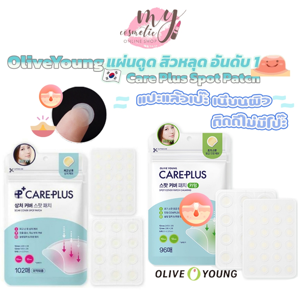 ... ทำให้รู้จักกันเยอะ อยากลองกันเยอะ สุดท้าย มันดีงาม ใช้กันต่อเนื่อง ลูกค้าซื้อซ้ำเยอะเลยจ้า แผ่นแปะสิว เป็นวัสดุไฮโดรคาร์บอนช่วยปกปิดและดูดซับบาดแผล และช่วยในการรักษาบาดแผล แผลสิวและรอยตำหนิ แผ่นฟิล์มบาง หยิบง่าย ไม่ต้องแงะ แนบติวผิดมาก มองไม่ค่อยเห็น ขยับบ่อยก็ไม่หลุด ดูดสิวดี ใช้แต่งหน้า เนียนสุดๆ ดูดสิวก็ดีงาม ติดไว้ สิวก็ถูกดูดแล้วสิวเราหายเร็วขึ้นค่ะ ไม่ทิ้งรอยดำ รอยคล้ำที่หน้าด้วย จะใช้หลังแต่งหน้า หรือจะใช้ตอนนอนก็มีประสิทธิภาพดีเยี่ยม รูปแบบใหม่ที่สามารถเปิดใช้งานแผ่นแปะสิวได้สะดวก และมาพร้อมด้วยซิปล็อค ป้องกันสกปรกเข้าไปเป็นสาเหตุในการเกิดสิวอีกด้วย ใช้แต่งหน้า เนียนๆๆๆๆสุดๆ 👌ดูดสิวก็ดีงาม ติดไว้ สิวก็ถูกดูดแล้ว ดูดสิวๆๆๆ หรือจะใช้ตอนนอนก็มีประสิทธิภาพดีเยี่ยม รูปแบบใหม่ที่สามารถเปิดใช้งานแผ่นแปะสิวได้สะดวก และมาพร้อมด้วยซิปล็อค ป้องกันสกปรกเข้าไปเป็นสาเหตุในการเกิดสิวอีกด้วย ===== # สีเขียว 96 ชิ้น (Calming) 🌈สินค้าใหม่ หมดอายุ 2027 # สีเขียว 96 ชิ้น (Calming) Olive young care Plus Spot Patch Calming (ซองละ 96 ชิ้น) มาแพงกว่า ตัวสีฟ้า เพิ่มส่วนผสมของ Cannabis หรือ Hemp ปลอบประโลมผิวดีมาก ลดอักเสบ จะทำให้รอยแดงน้อย และทิ้งรอยคล้ำดำน้อยที่สุด บรรเทาการอักเสบควบคุมปริมาณน้ำมันในผิวให้มีความสมดุล ลดสาเหตุของการเกิดสิวอุดตัน และมีโอเมก้า 3 ช่วยกระตุ้นการผลิตคอลลาเจนและอีลาสตินภายในชั้นผิวของเรา ลดการเกิดริ้วรอย ให้ผิวสุขภาพดี ชุ่มชื้น เนียนนุ่มน่าสัมผัส