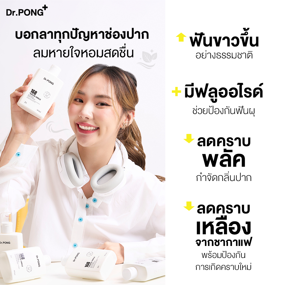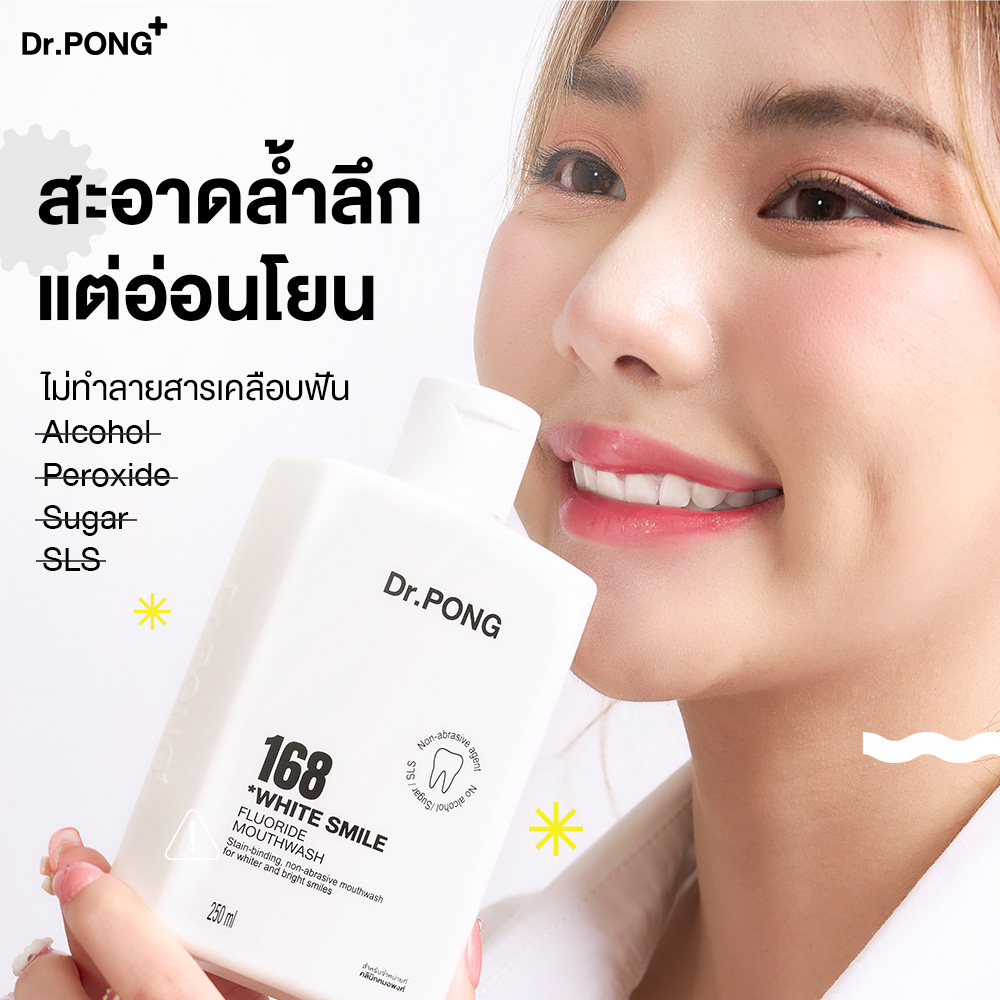 Dr.PONG 168 White smile fluoride mouthwash น้ำยาบ้วนปากเพื่อฟันขาวขึ้นอย่างเป็นธรรมชาติ