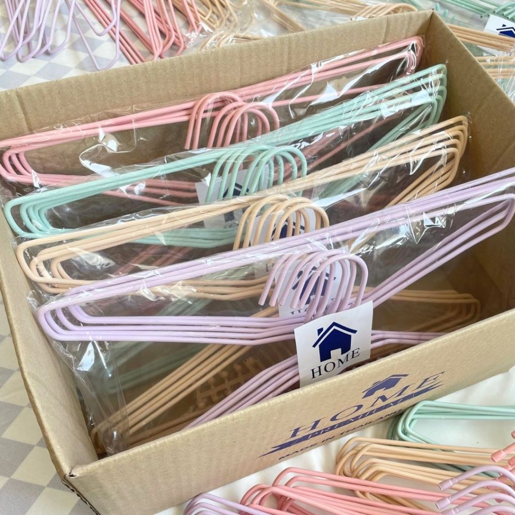 ไม้แขวนเสื้อ สีพาสเทล น่ารัก ยกลัง 40 ชิ้น ไม้แขวน ลวดหุ้มพลาสติก #No.36 พาสเทล x4