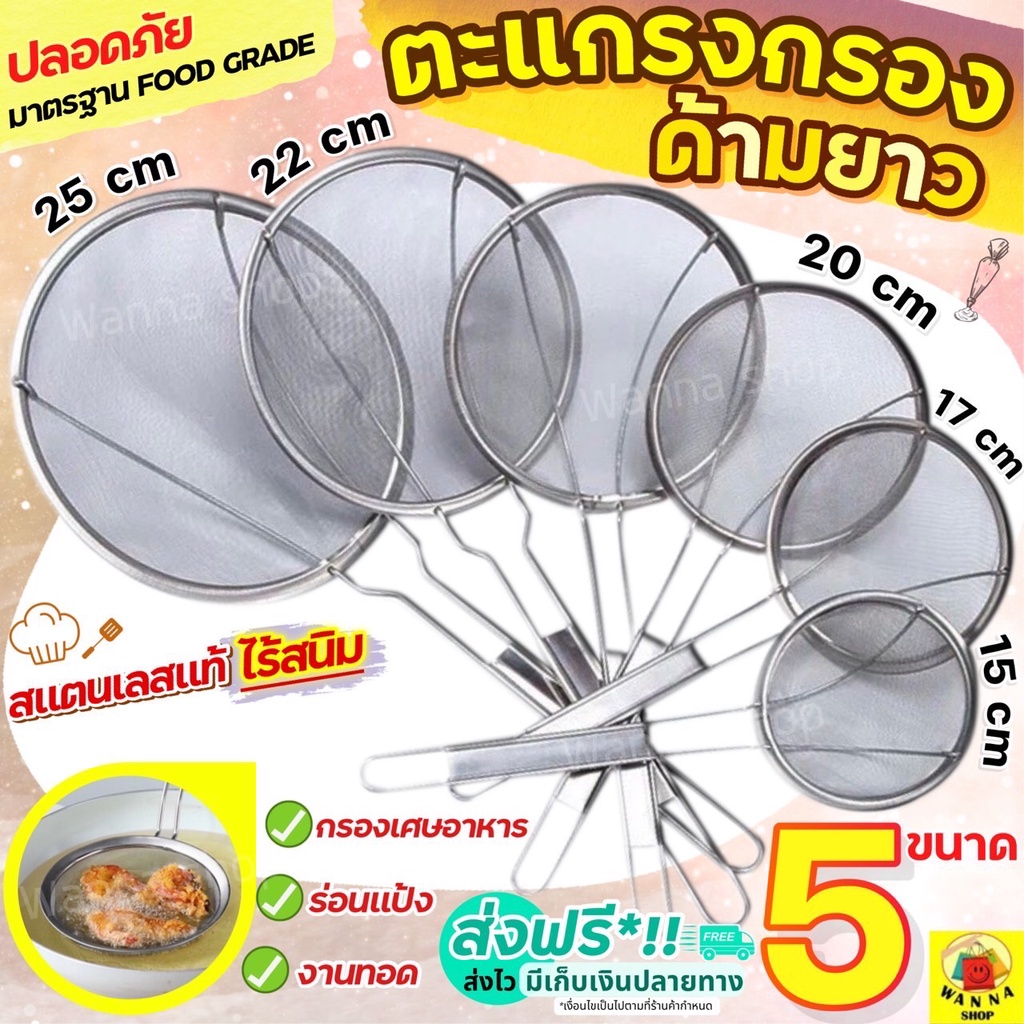🔥ส่งฟรี🔥 กระชอน ด้ามยาว สแตนเลสแท้ wanna (มีให้เลือก5ขนาด!) กระชอนกรอง ที่ร่อนแป้ง กระชอนร่อนแป้ง FOFO ตะแกรงร่อนแป้ง