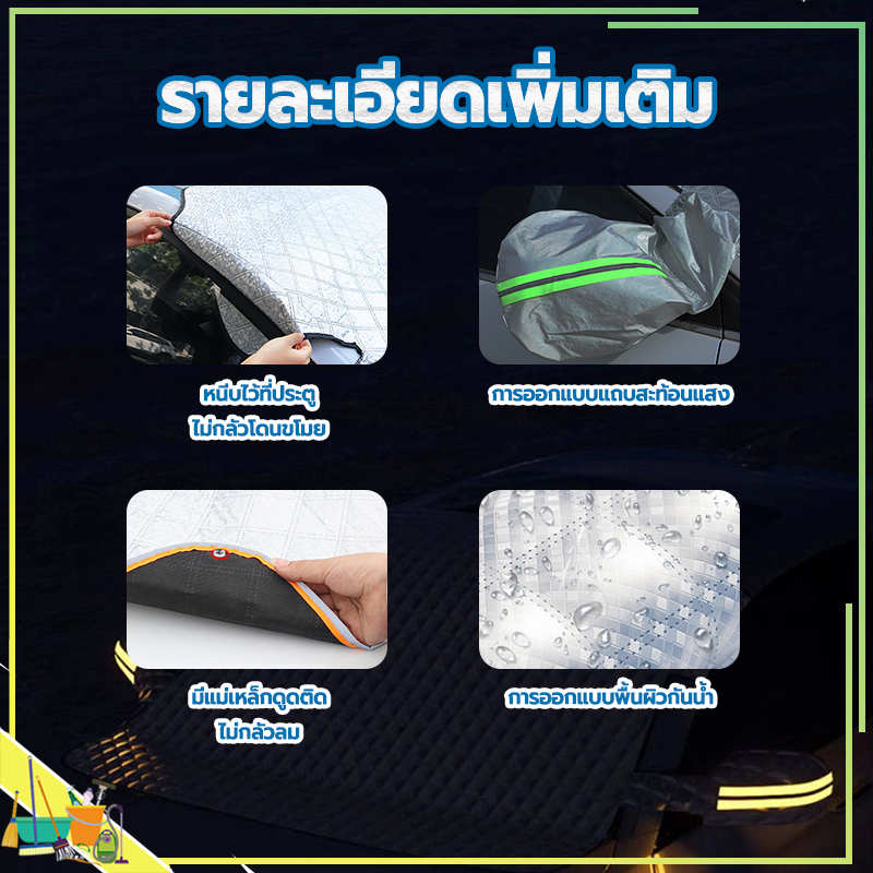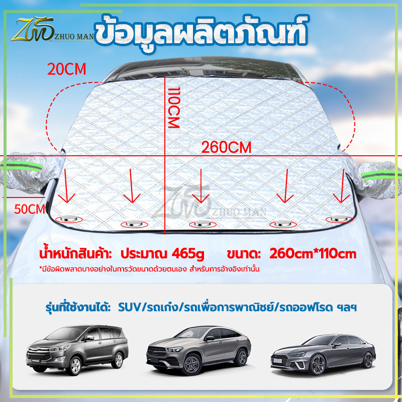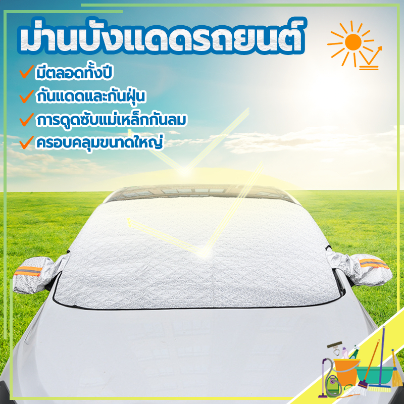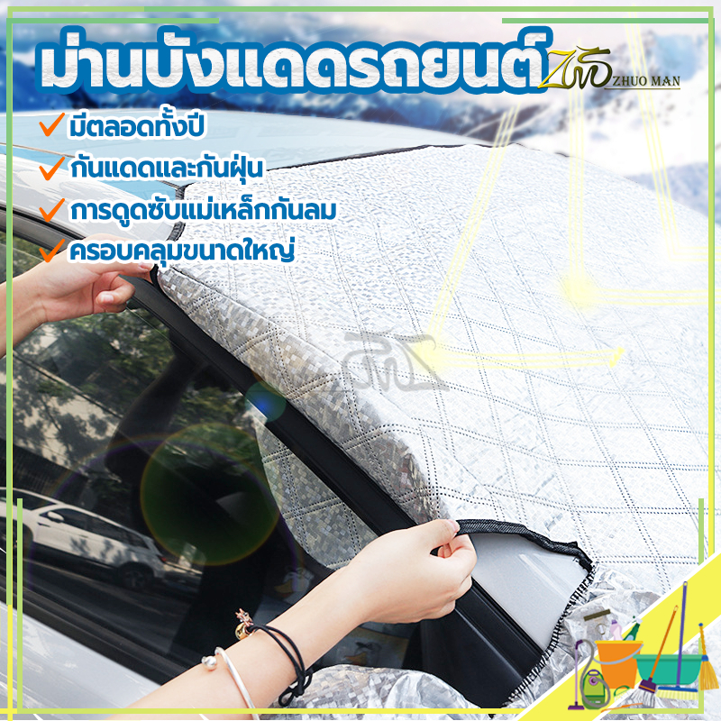ม่านบังแดดรถยนต์ ผ้าคลุมหน้ารถ 260*110CM ผ้าคลุมรถยนต์ ลดความร้อนอบอ้าวภายในรถได้ดี การดูดซับแม่เหล็กกันลม
