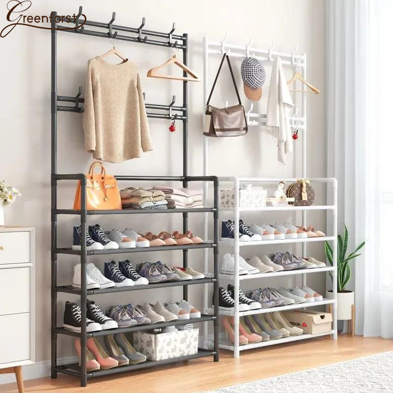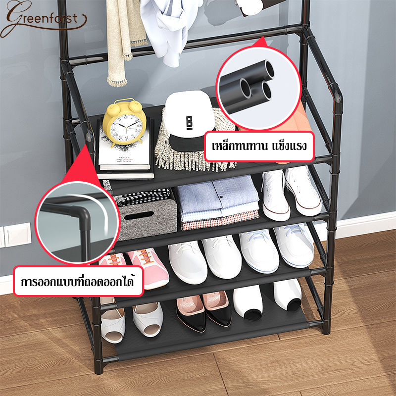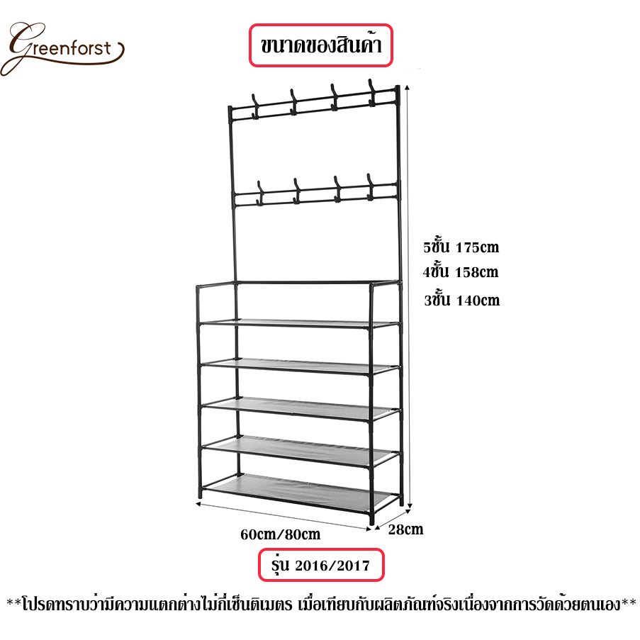 Greenforst ราวแขวนเสื้อ ชั้นเก็บของ ชั้นวางรองเท้า ราวพร้อมตะขอแขวนอเนกประสงค์ ขั้นวางรองเท้า 3/4/5ชั้น รุ่น 2016/2017