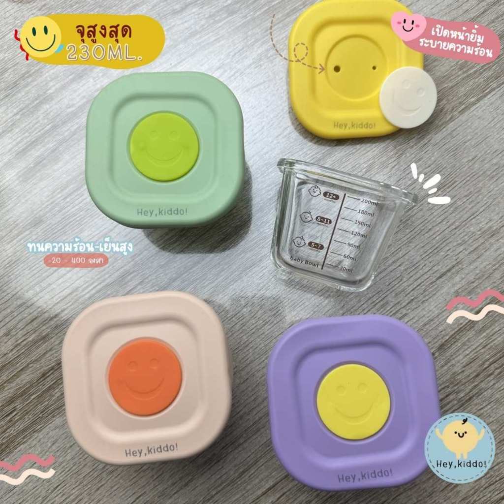 Heykiddo : ถ้วยแก้วแช่อาหาร ถ้วยแก้วฟรีสอาหาร อุ่น นึ่ง ตุ๋น สำหรับเตรียมอาหาร จุ 200-230ml. ทนอุณหภูมิ -20-400องศา