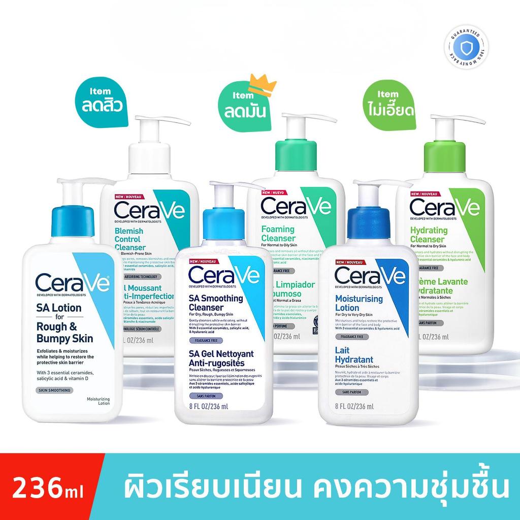 เซราวี CERAVE SA Smoothing-Cleanser โฟมทำความสะอาดผิวหน้าและผิวกาย สำหรับผิวธรรมดา-ผิวมัน เป็นสิวง่าย 236ml.