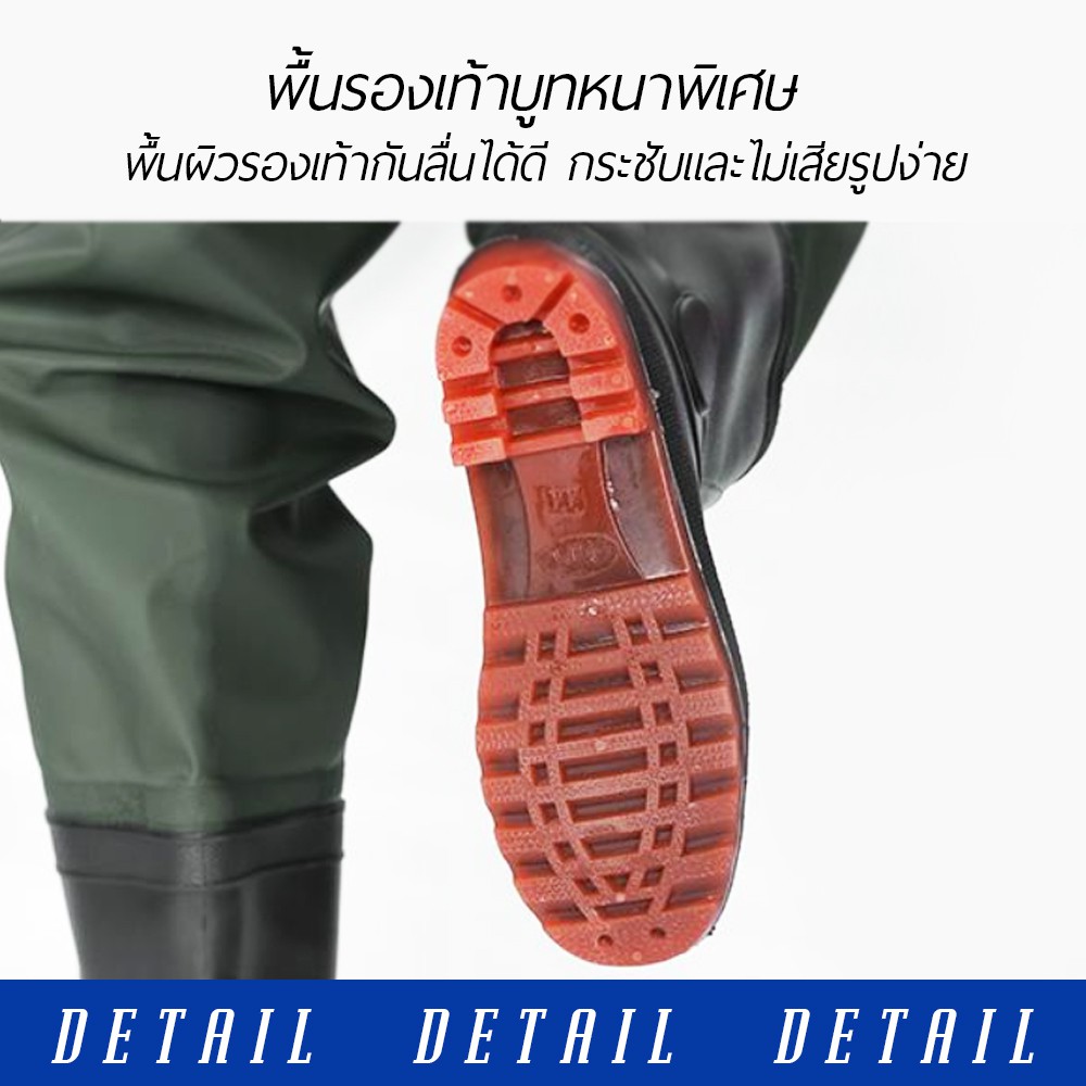 ... สารพิษในน้ำ หรือ สิ่งสกปรก ปฏิกูลต่างๆ น้ำเน่าเสีย น้ำโคลน ✔ป้องกันอันตราย : จากสัตว์น้ำ แมลง ของมีคม เช่น เหล็ก กิ่งไม้แหลม หินมีคม ✔ป้องกันน้ำ : ประมานน้ำสูงกว่าระดับเข่า ได้เป็นอย่างดี มอก. 809-2531