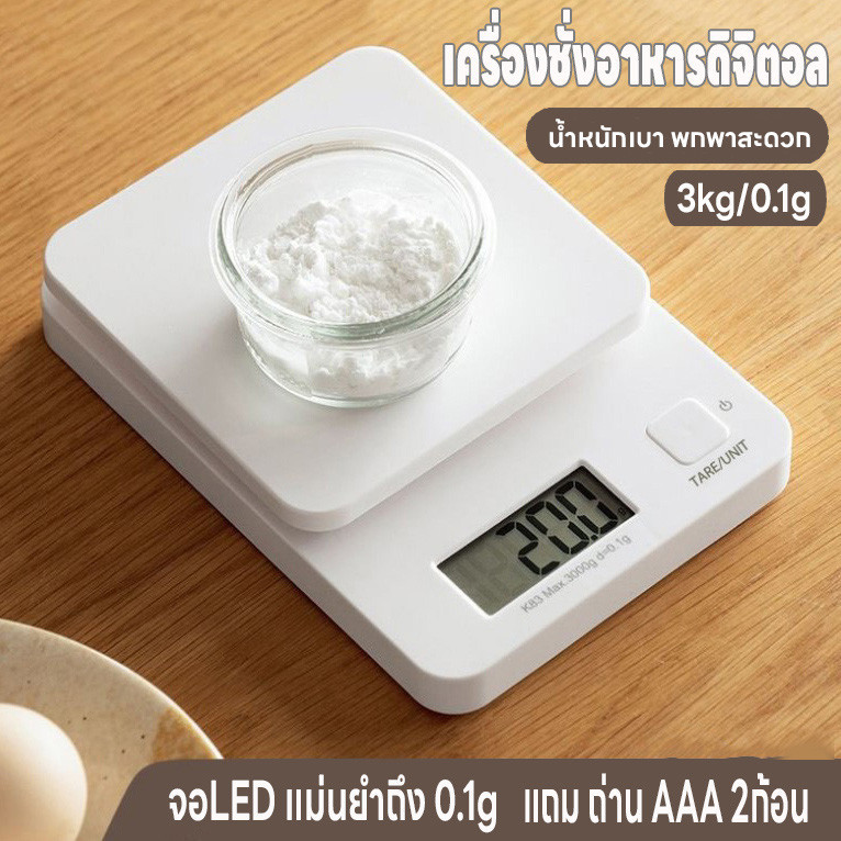 เครื่องชั่งน้ำหนักดิจิตอล ชั่งจิวเวลรี่ กาแฟ อาหาร วัตถุดิบ แม่นยำ0.1g รับน้ำหนักได้ 3kg/0.1g กันน้ำ แถมถ่าน2ก้อน จอLED