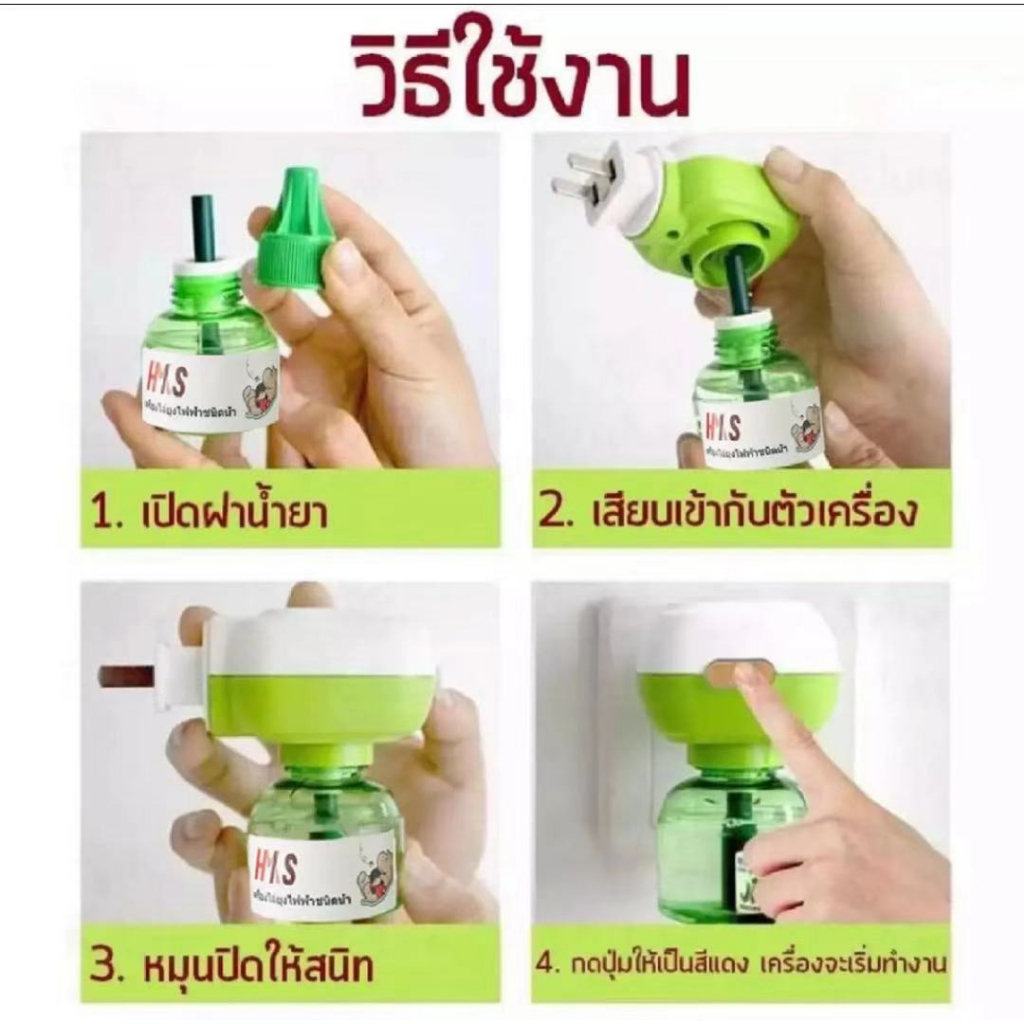 ... ๊กทุกครั้งหลังใช้งาน สามารถใช้ได้นานกว่า 300 ชั่วโมง/ขวด 45 ml. ในเขตพื้นที่ 13 ตารางเมตร/1 จุดเสียบ ***เสียบน้ำยากับเครื่องในลักษณะตั้งตรงเท่านั้น วิธีเก็บรักษา ข้อแนะนำ ควรติดในพื้นที่ที่มีอากาศถ่ายเท ถ้าเป็นห้องปิดแนะนำให้เปิดเครื่องจนยุงหายหมดแล้วปิดเครื่อง ควรติดห่างจากเด็กเล็ก ควรติดตั้งตามจุดที่คิดว่ายุงจะบินผ่านเข้าห้อง คำเตือน ห้ามรับประทาน ห้ามใช้ผลิตภัณฑ์ใกล้วัตถุไวไฟ ห้ามคว่ำหรือตะแคงตัวน้ำยาระหว่างใช้งาน อย่าจับเครื่องใช้ไฟฟ้าระหว่างมือเปียก ควรล้างมือให้สะอาดทุกครั้งหลังการหยิบจับหรือหลังจากเปลี่ยนขวดน้ำยา