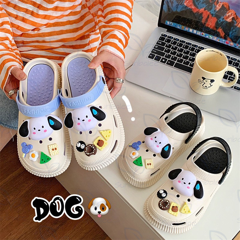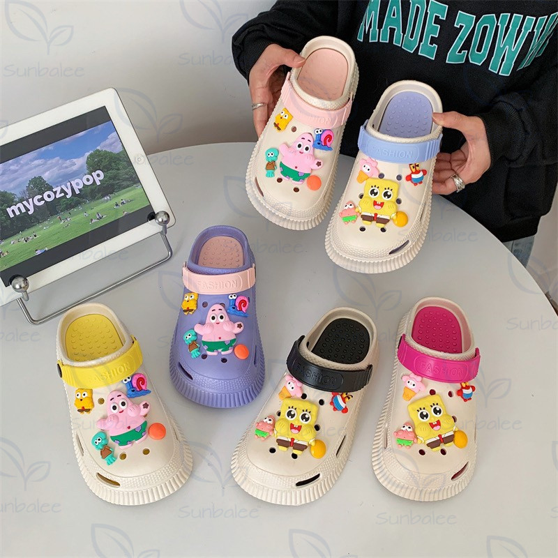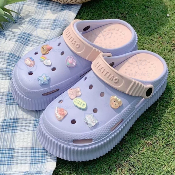 SHO-H-25 🌻 รองเท้าหัวโต แถมตัวติดน่ารัก สายรัดส้น สีพาสเทลทูโทน พื้นนิ่มใส่สบาย เสริมส้น สินค้าพร้อมส่ง