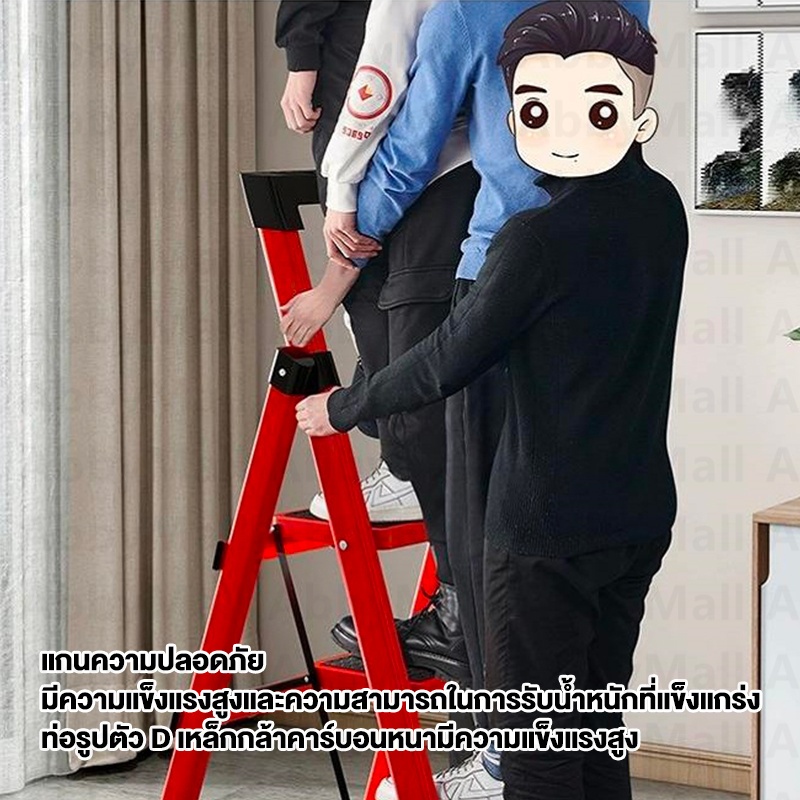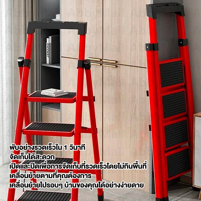 ABBY บันได บันไดพับได้ 7ขั้น 190cm รับน้ำหนักได้ 300KG วัสดุเหล็กอลูมิเนียมอย่างหนา พับเก็บได้ กันลื่น ชั้นวางเครื่องมือ