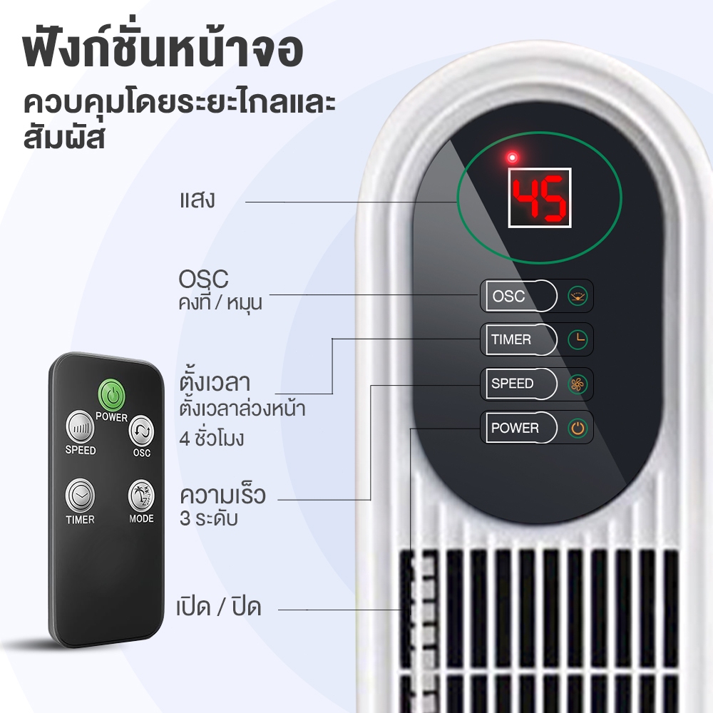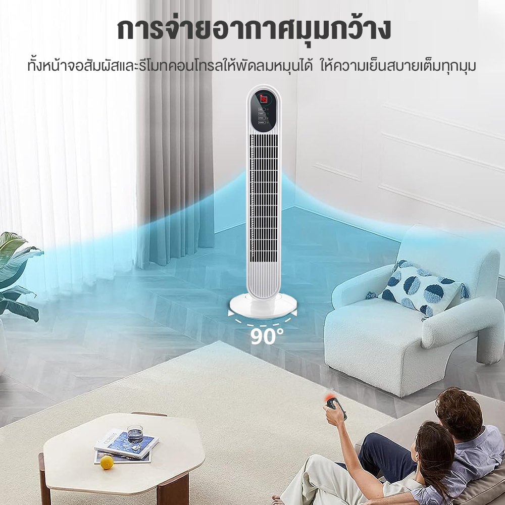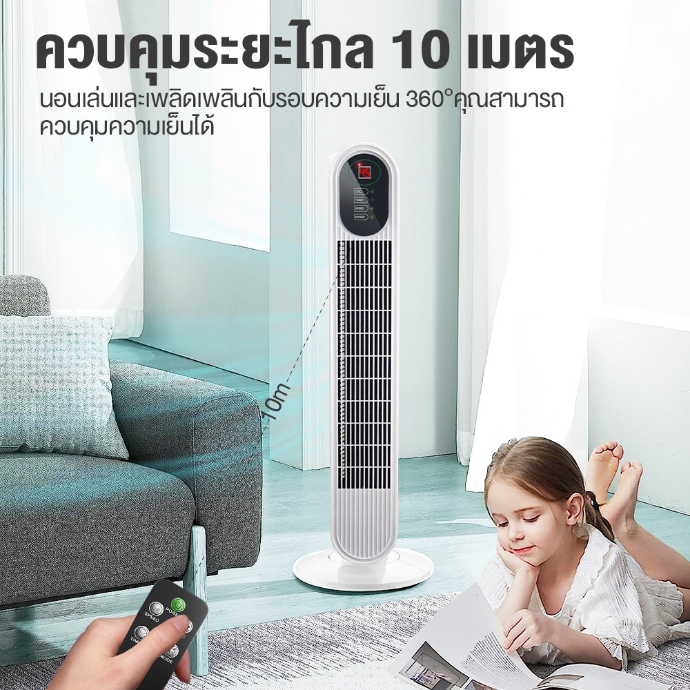 YOTEX พัดลม พัดลมทาวเวอร์ พัดลมไร้ใบพัด ปรับความเร็ว 3 ระดับ พัดลมรีโมท ลมแรง เสียงเบา พร้อมฟังก์ชั่นจับเวลา