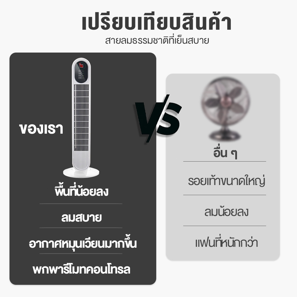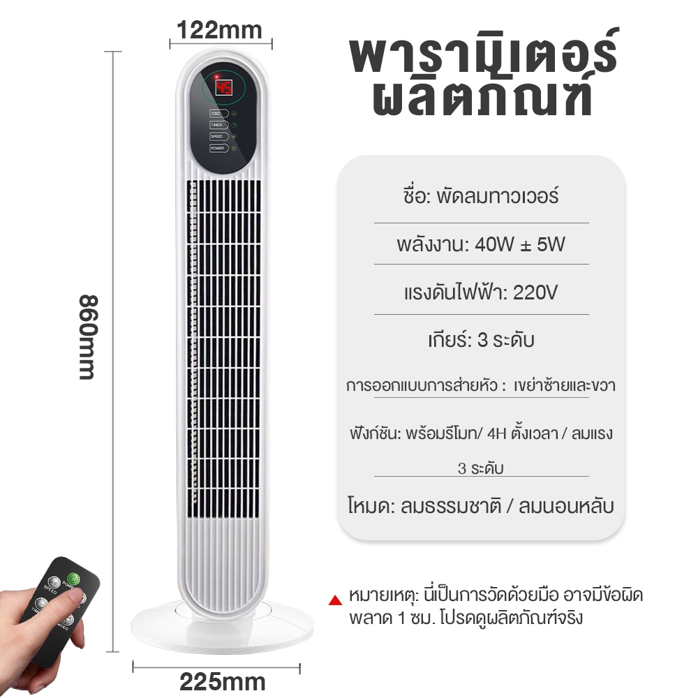 ... การทําความสะอาดแบบถอดได้ การออกแบบกลองอากาศ / เงียบและมั่นคง / เย็นและสดชื่น --มีความเร็วลม 3 ระดับให้คุณเลือก --ระดับ / 2 ระดับ / 3 ระดับ (ลมอ่อน / ลมสดชื่น / ลมแรง) --พัดลมทาวเวอร์ส่ายอัตโนมัติ 90 องศาเมื่อปรับด้านบนของพัดลมทาวเวอร์หมุนไปทางซ้าย -- พัดลมทาวเวอร์จ่ายอากาศแบบทิศทางเมื่อหมุนไปทางขวา -- ระดับ / การจ่ายอากาศแบบทิศทาง / 3 ระดับ ส่ายอัตโนมัติ พารามิเตอร์ผลิตภัณฑ์ --ชื่อ: พัดลมทาวเวอร์ --พลังงาน: 45W แรงดันไฟฟ้า: 220V --เกียร์: 3 ระดับ --การออกแบบการส่ายหัว : หมุนซ้ายและขวา --น้ำหนักสุทธิ: 2.0 กิโลกรัม --สี: ขาวดำ หมายเหตุ: นี่เป็นการวัดด้วยมือ อาจมีข้อผิดพลาด 1 ซม. โปรดดูผลิตภัณฑ์จริง