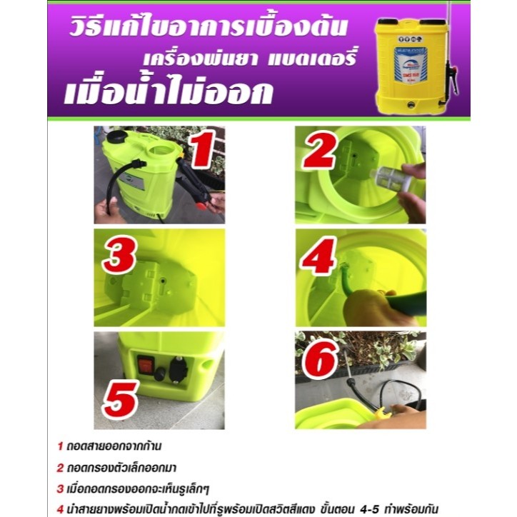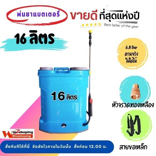 ... ้าน และ หัวพ่นยาแบบอื่นๆ แถมมาให้ คุณภาพดี ราคาถูก รับประกันแบตเตอรี่ 3 เดือน สินค้าคุณภาพ ราคายุติธรรม👍👍 - แข็งแรง ทนทาน น่าใช้งาน - ความจุน้ำยา 16 ลิตร - แรงดัน(mpa) : 5.5-6.8 บาร์ - แบตารี่ 12 V 8AM - พ่นได้ไกล 5-8 เมตร - แบตเตอรีแห้ง 1 ก้อน - น้ำหนักเบา เสียงเงียบ ไม่ต้องเติมน้ำมัน - มีสวิตส์ หมุนเพื่อเร่งหรือหรี่ - มีสวิสต์ปิดเปิดแรงดัน อัตโนมัติ ตัดการทำงานของมอเตอร์โดยอัตโนมัติ เมื่อหยุดปล่อยน้ำ - มีมิเตอร์แสดงการใช้ไฟของมอเตอร์ - ใช้กำลังไฟจากแบตเตอรี่ โดยไม่ต้องโยก ประหยัดแรงงาน - สะดวก ประหยัด คุ้มค่าแก่การนำมาใช้งาน - ทนการกัดกร่อนได้เป็นอย่างดี ขอบคุณที่อุดหนุน🙏🙏🙏 ☆☆☆☆☆📌📌 ใช้ฉีดยาเสร็จแล้ว ควรที่จะใช้น้ำปล่าว ฉีดล้างทำความสะอาด เพื่อไม่ให้ปั๊มตัน ☆☆☆☆ ☆☆☆☆☆ ใช้ฉีดยาเสร็จแล้ว ควรที่จะใช้น้ำปล่าว ฉีดล้างทำความสะอาด เพื่อไม่ให้ปั๊มตัน ☆☆☆☆ 💦💦เงื่อนไขการรับประกัน ::💦💦 1.บริษัทฯ มีบริการซ่อมและเปลี่ยนอะไหล่โดยไม่คิดมูลค่า ในกรณีความเสียหายที่เกิดจากความผิดพลาดของโรงงานผู้ผลิต เป็นระยะเวลาตามวันที่ที่ระบุในใบรับประกัน 2.ขั้นตอนการเปลี่ยนสินค้า จะดำเนินการเปลี่ยนเฉพาะอะไหล่ที่มีการชำรุดหรือผิดพลาดจากขั้นตอนการผลิตเท่านั้น ในกรณีหากสินค้าบางรายการของทางร้านไม่มีอะไหล่ทดแทน ทางร้านจะรับผิดชอบโดยทำการเปลี่ยนสินค้าชิ้นใหม่ให้ 3. เงื่อนไขการรับประกันสินค้านี้ไม่ครอบคลุมถึงความเสียหายที่เกิดจากการใช้งานผิดปกติเช่น อุบัติเหตุ , ไฟตก , ไฟเกิน , ใช้แหล่งจ่ายไฟผิด , ภัยธรรมชาติ , การใช้งานไม่ถูกวิธี , ขาดการดูแลรักษา , การดัดแปลงจากช่างที่ไม่ใช่ตัวแทนของบริษัท 4.หากสินค้ามีปัญหาและตรงตามเงื่อนไขข้อ 1,2 และ 3 ทางร้านจะดำเนินการออกค่าใช้จ่ายในการขนส่งสินค้าทั้งหมดให้กับลูกค้า #สายส่งน้ำ #ระบบน้ำ #ท่อน้ำ #สายน้ำหยด #สายน้ำพุ่ง #ตั้งเวลารดน้ำ #ท่อน้ำหยด #เทปสายน้ำพุ่ง #ท่อน้ำพุ่ง สายส่งน้ำ,ระบบน้ำ,ท่อน้ำ,สายน้ำหยด,สายน้ำพุ่ง,ตั้งเวลารดน้ำ,ท่อน้ำหยด,เทปสายน้ำพุ่ง,ท่อน้ำพุ่ง
