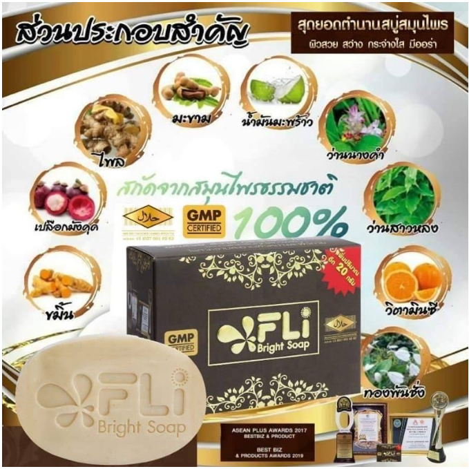 FLI Bright Soap (เอฟ แอล ไอ ไบร์ท โซฟ) เลขที่จดแจ้ง 14-16500001544 FLI Bright Soap (เอฟ แอล ไอ ไบร์ท โซฟ) สบู่สมุนไพรแท้ สบู่แก้หลังลาย สบู่แก้คอดำ สบู่สิวหลุด สบู่รักษาสิวอุดตัน สบู่ลดรอยสิวที่หลัง สบู่ลดรูขุมขน สบู่ลดรอยดำจากสิว สบู่ลดรอยแตกลาย สบู่ลดริ้วรอย สบู่ลดผดผื่นคัน สบู่ลดแบคทีเรีย สบ