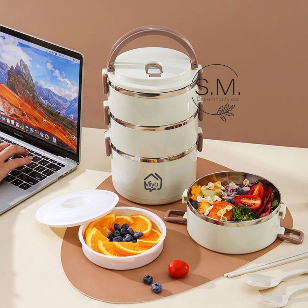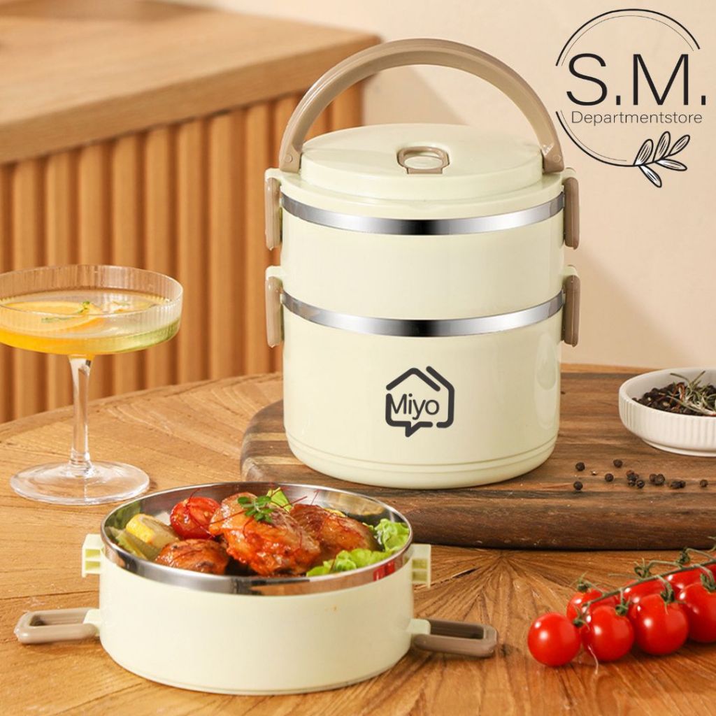 SM.ปิ่นโตสแตนเลสใส่อาหาร แบบแยกชั้น มีซิลิโคนกันหกได้ กล่องอาหาร 2/3/4ชั้น