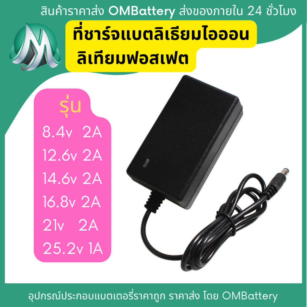 [ทุกรุ่น] ที่ชาร์จ 8.4v 12.6v 14.6v 16.8v 21v และ 25.2v สำหรับแบตเตอรี่ลิเทียมไออ้อน ลิเทียมฟอสเฟต หัวชาร์จ DC 2.1mm OMB