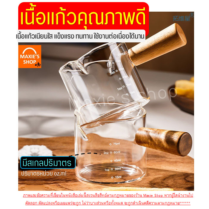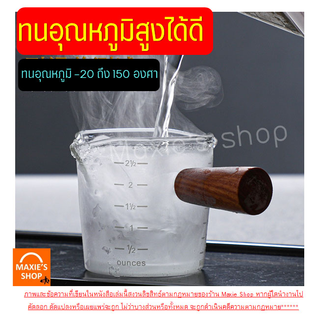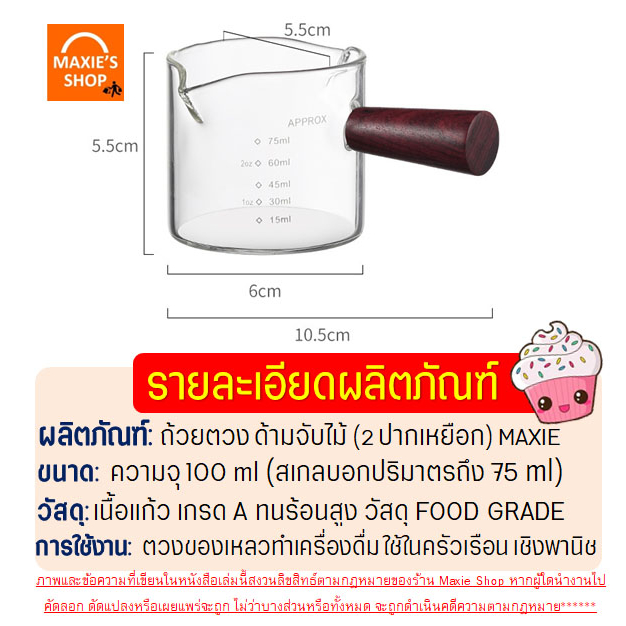 แก้วตวง MAXIE รุ่นใหม่!ด้ามจับแบบไม้แท้ แบบ 2 ปากเหยือก ขนาดใหญ่ 100 มิลลิลิตร (แต่สเกลบอกปริมาตรมีถึงแค่ 75 ml นะคะ) รายละเอียดผลิตภัณฑ์ เนื้อแก้ว: ผลิตจากแก้วโบโรซิลิเกต เนื้อหนา คุณภาพเกรด A+ ทนอุณหภูมิได้ดี -20 ถึง 150 องศาเซลเซียส (ทนความร้อน) แข็งแรง ทนทาน ใช้งานได้นาน พร้อมออกแบบพิเศษมีปาก
