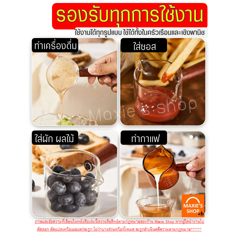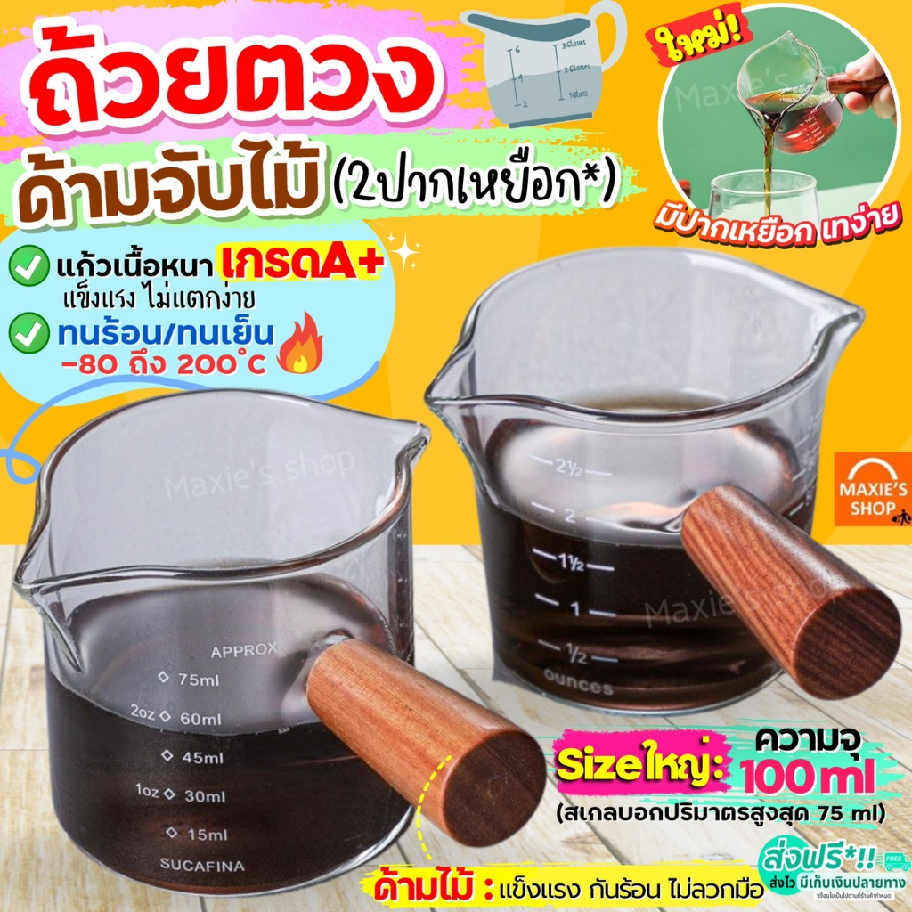 🔥ส่งฟรี🔥 ถ้วยตวงแก้ว ด้ามไม้! MAXIE มีให้เลือก2ขนาด! [2333-2ปาก]