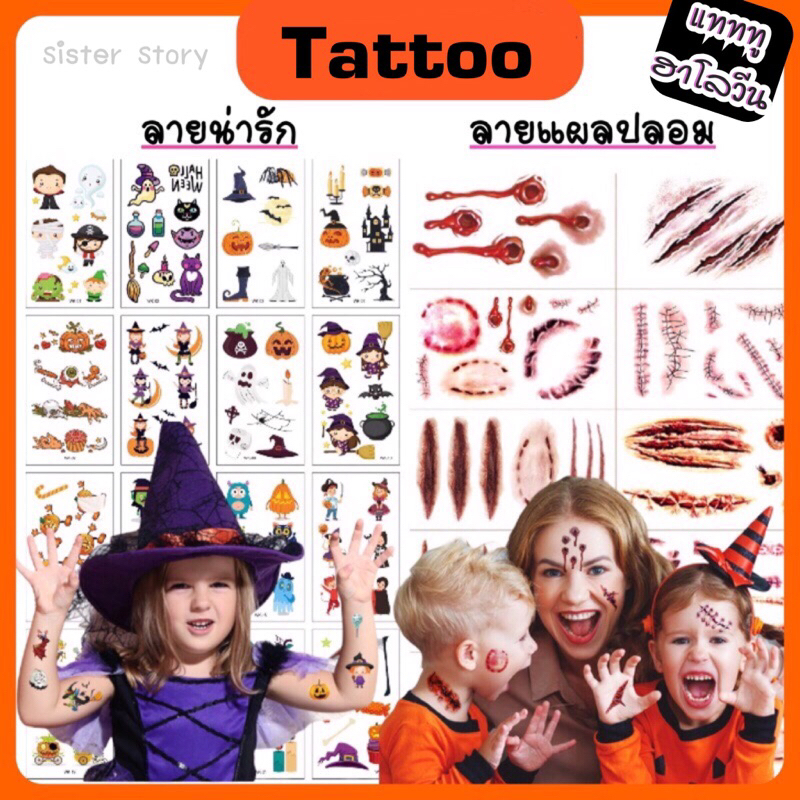 🔥พร้อมส่ง จาก กทม🔥 สติกเกอร์แทททู แทททูฮาโลวีน กันน้ำ tattoo halloween